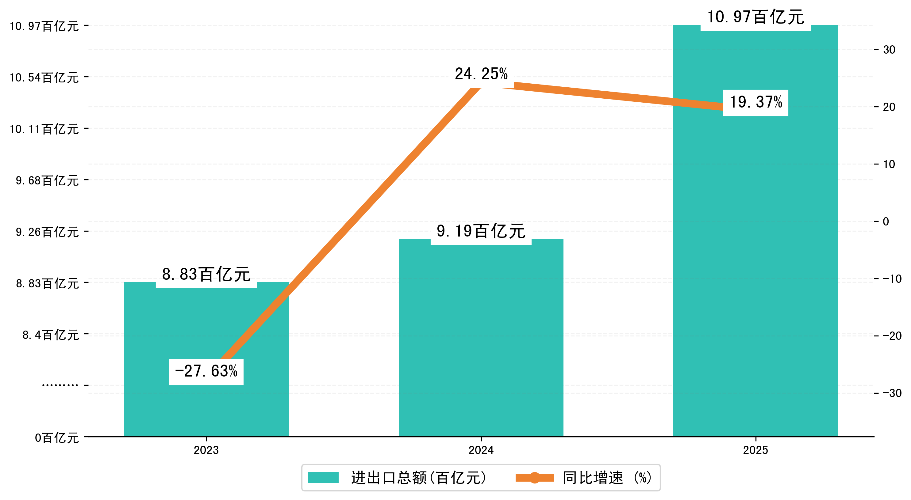 以美元计,2025年8月昆明市进出口总额为23,4828.0255万美元,相比上月增加了1,3025.2592万美元;相比上年同期增加了5,2097.1637万美元,同比增加18.10%。
