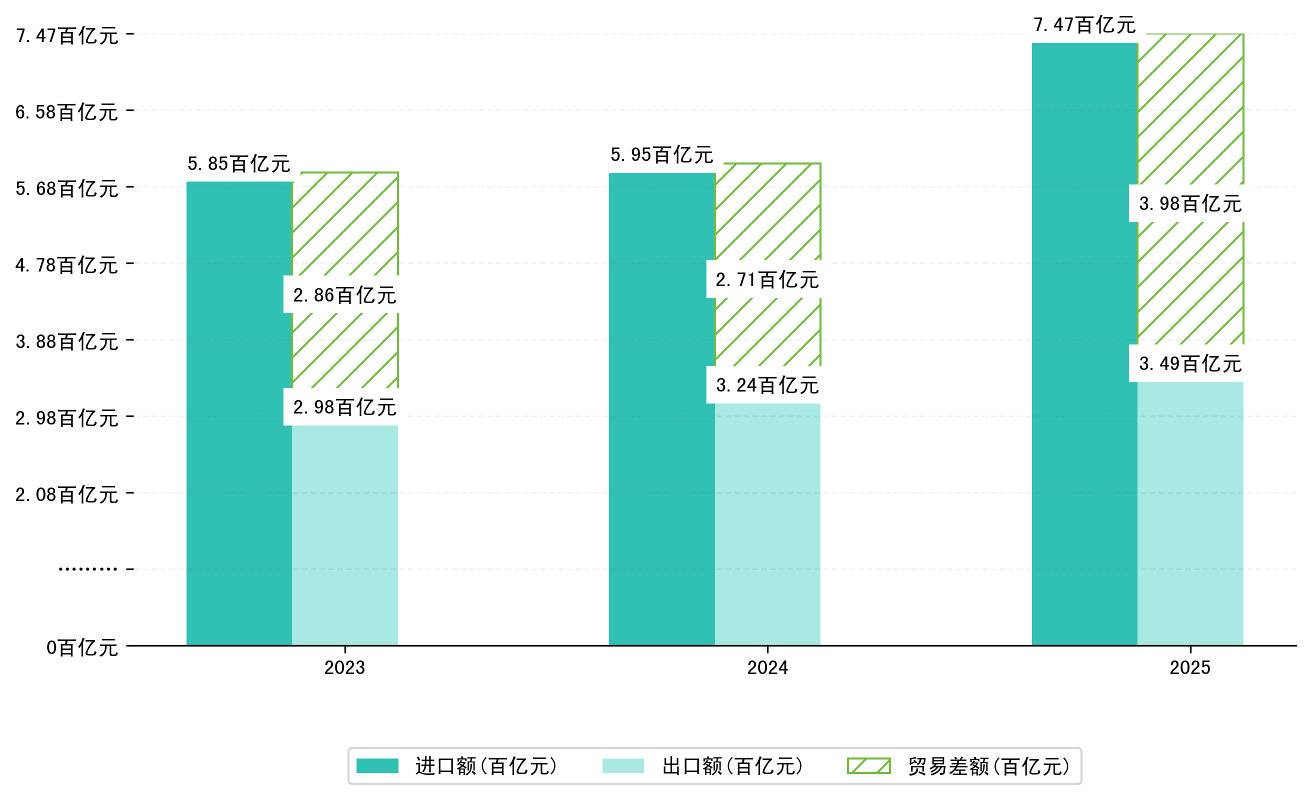 以美元计,2025年8月昆明市贸易差额为8,1933,6215万美元(贸易逆差),相比上月减少了3,7193,9126万美元;相比上年同期减少了3,0841,6109万美元,同比减少60.36%。