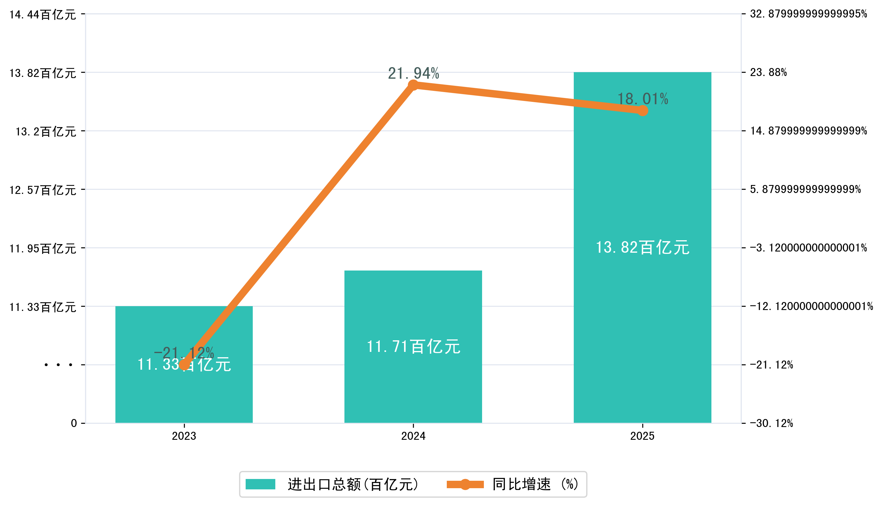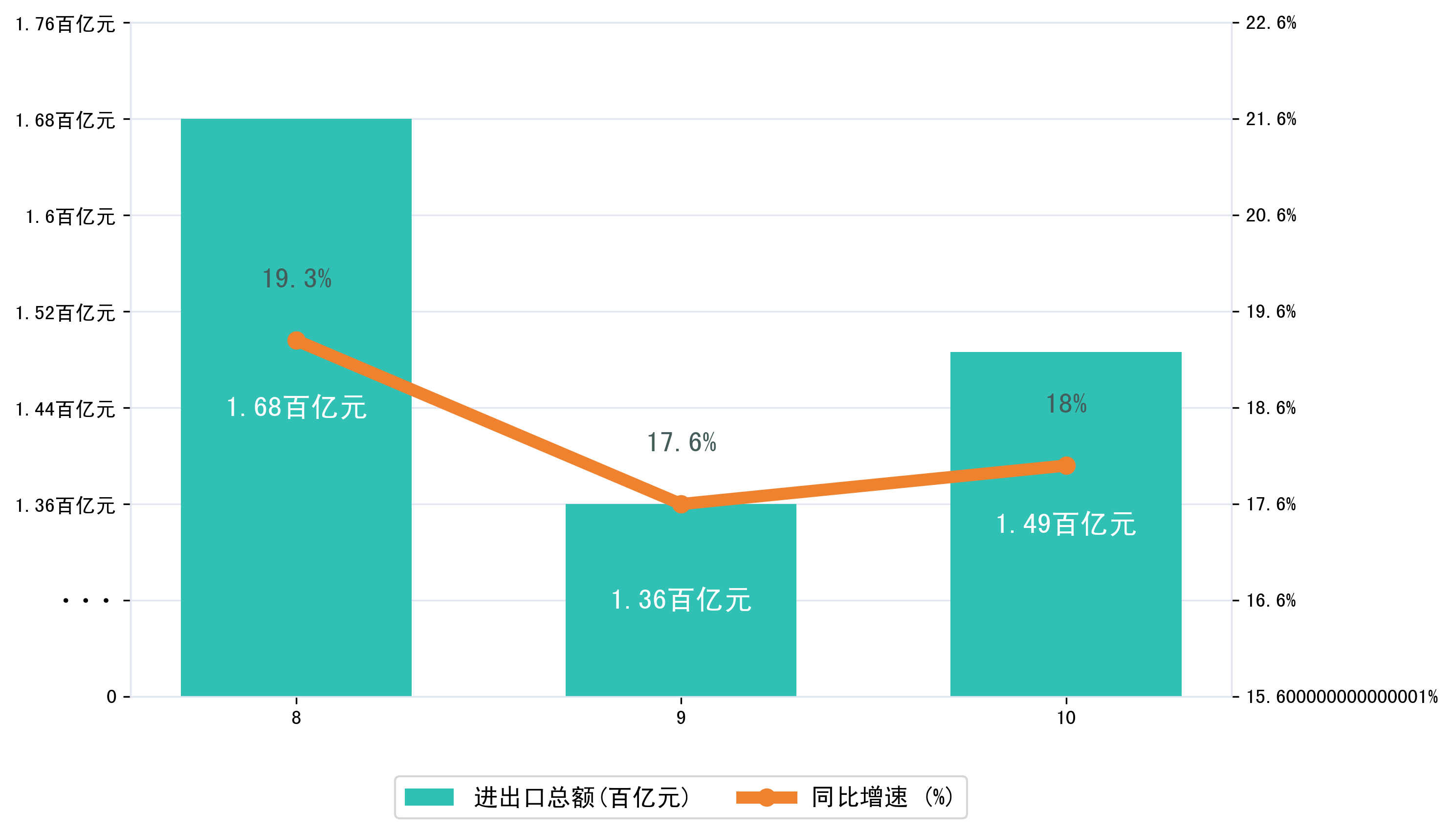 以人民币计,2025年1-10月昆明市进出口总额为1381,6729.8331万元,相比上年同期增加了210,8290.3905万元,同比增加了18.00%。