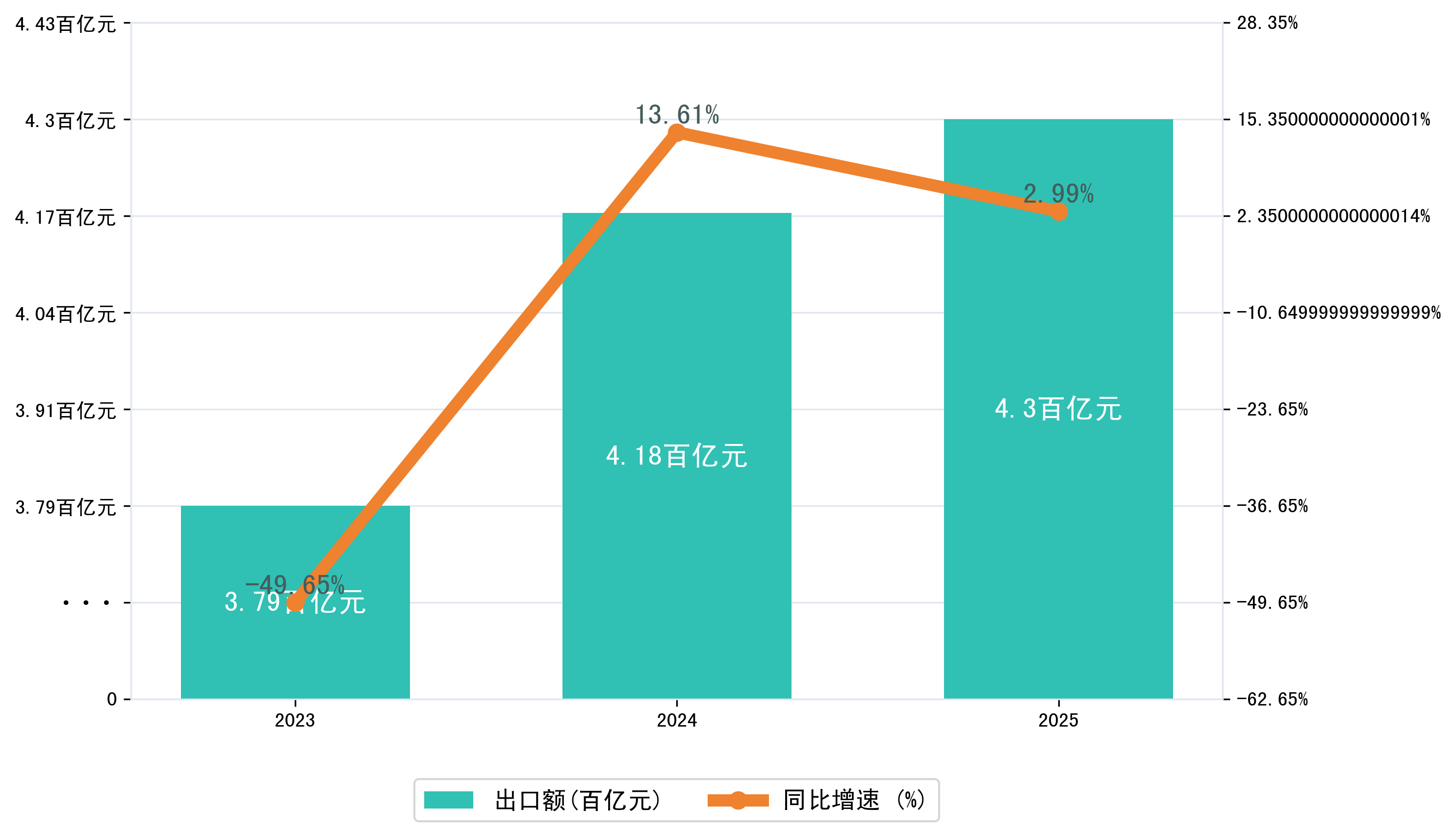 以人民币计,2025年1-10月昆明市出口额为430,1157.9281万元,相比上年同期增加了12,4947.4996万元,同比增加了3.00%。