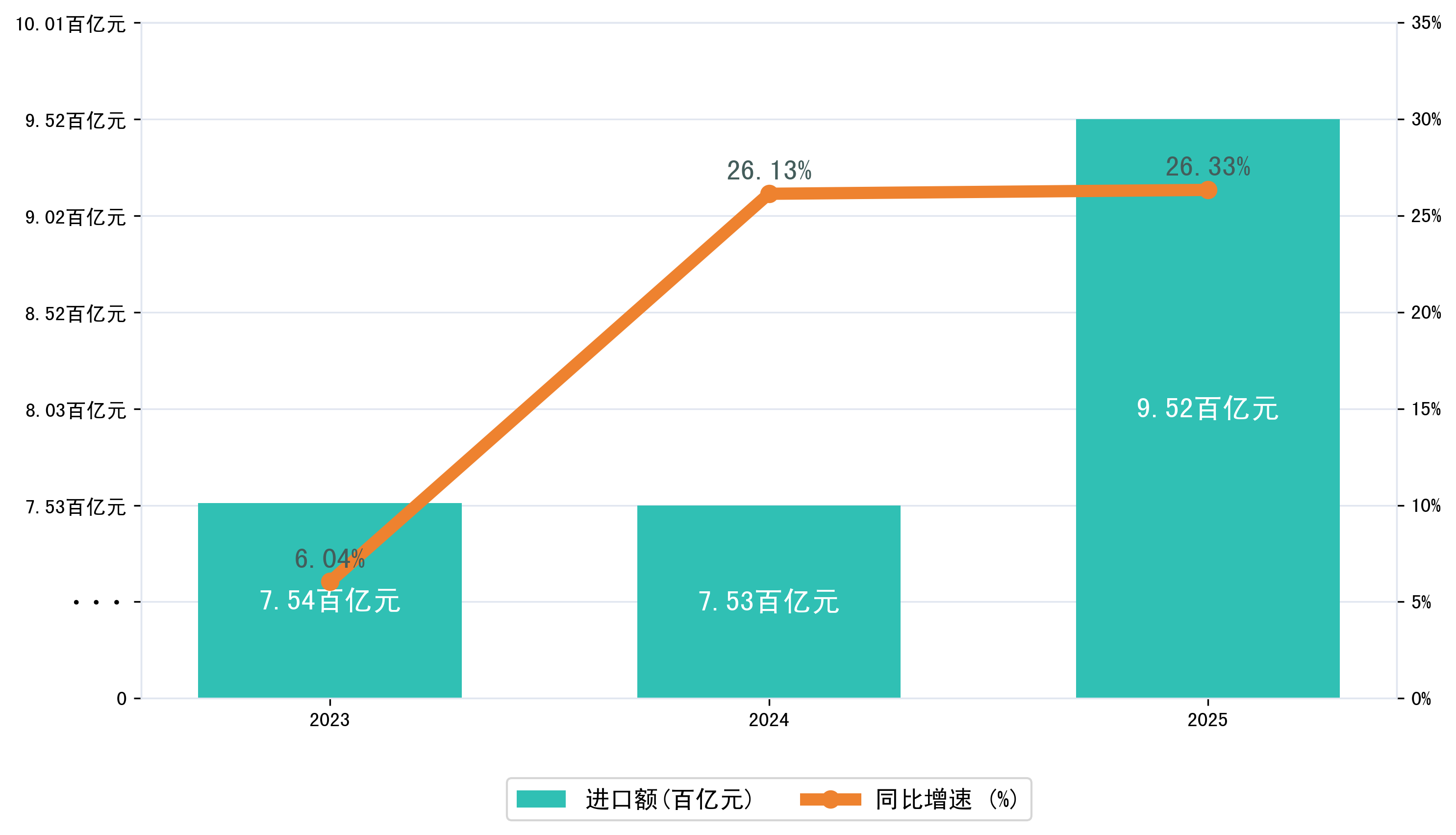 以人民币计,2025年1-10月昆明市进口额为951,5571.905万元,相比上年同期增加了198,3342.8909万元,同比增加了26.30%。