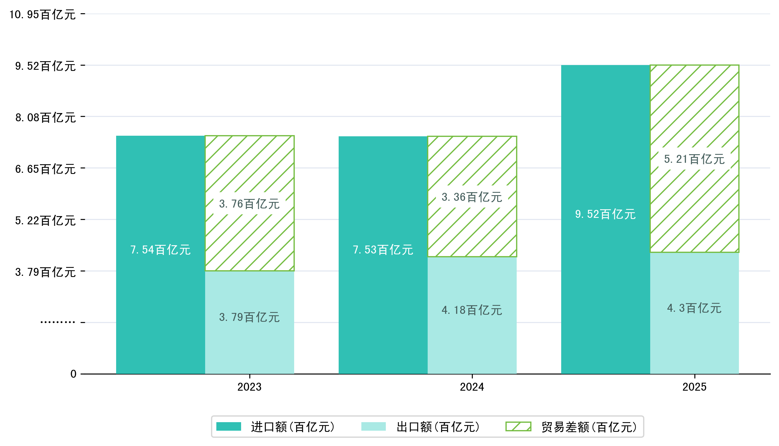以人民币计,2025年10月昆明市贸易差额为53,0910,0958万元(贸易逆差),相比上月增加了16,7046,9964万元,即2,3094,0344万美元;相比上年同期减少了25,0412,8921万元,同比减少89.27%。
