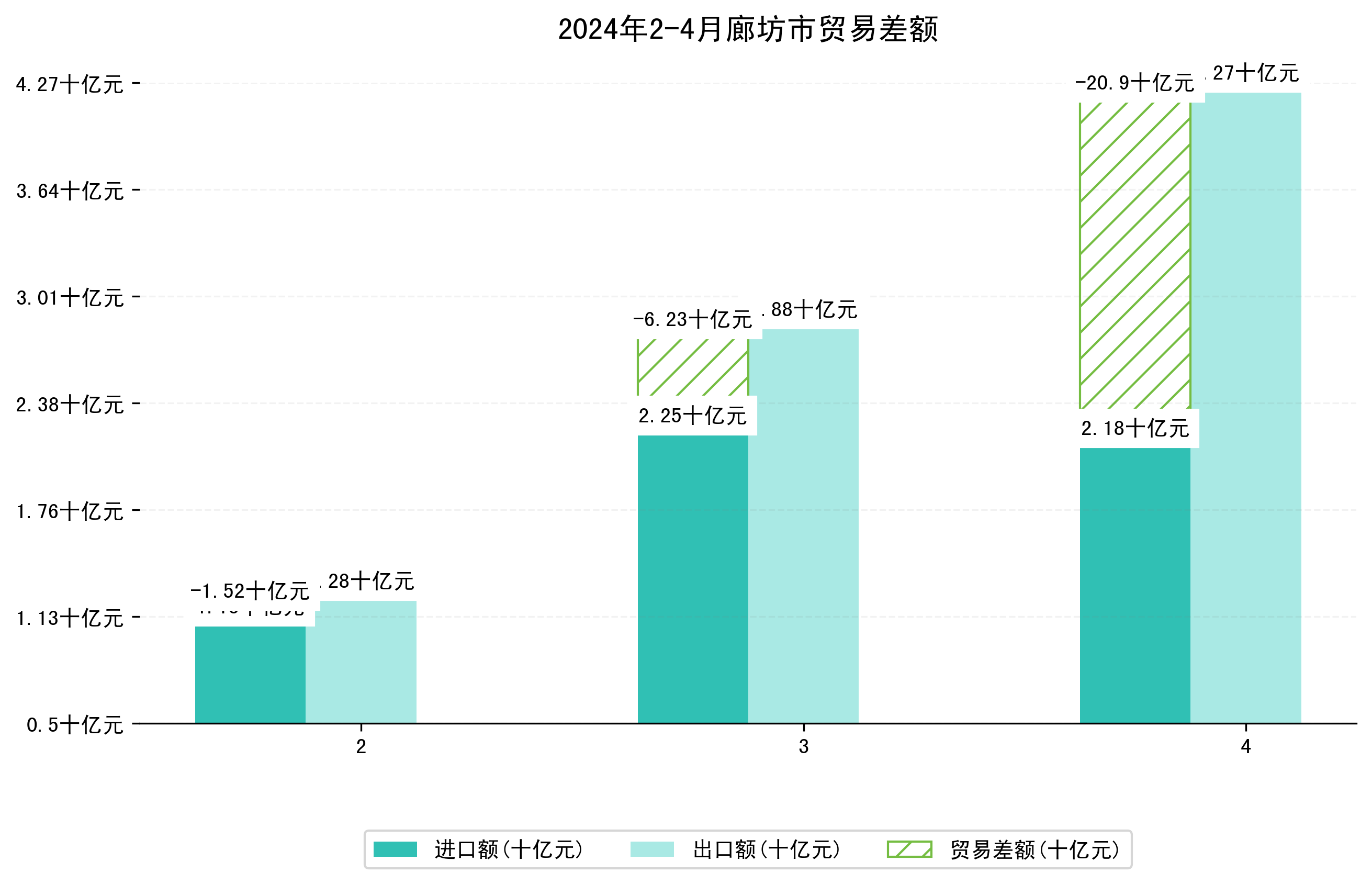 (图四:2024年2-4月廊坊市贸易差额)