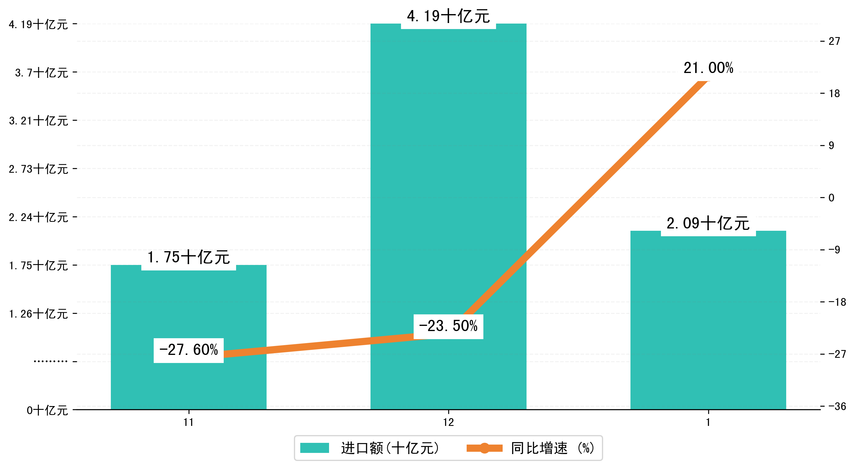 以人民币计,2024年1月廊坊市进口额为20,9345.8587万元,相比上月减少了20,9678.8878万元;相比上年同期增加了3,6241.349万元,同比增加了21.00%。