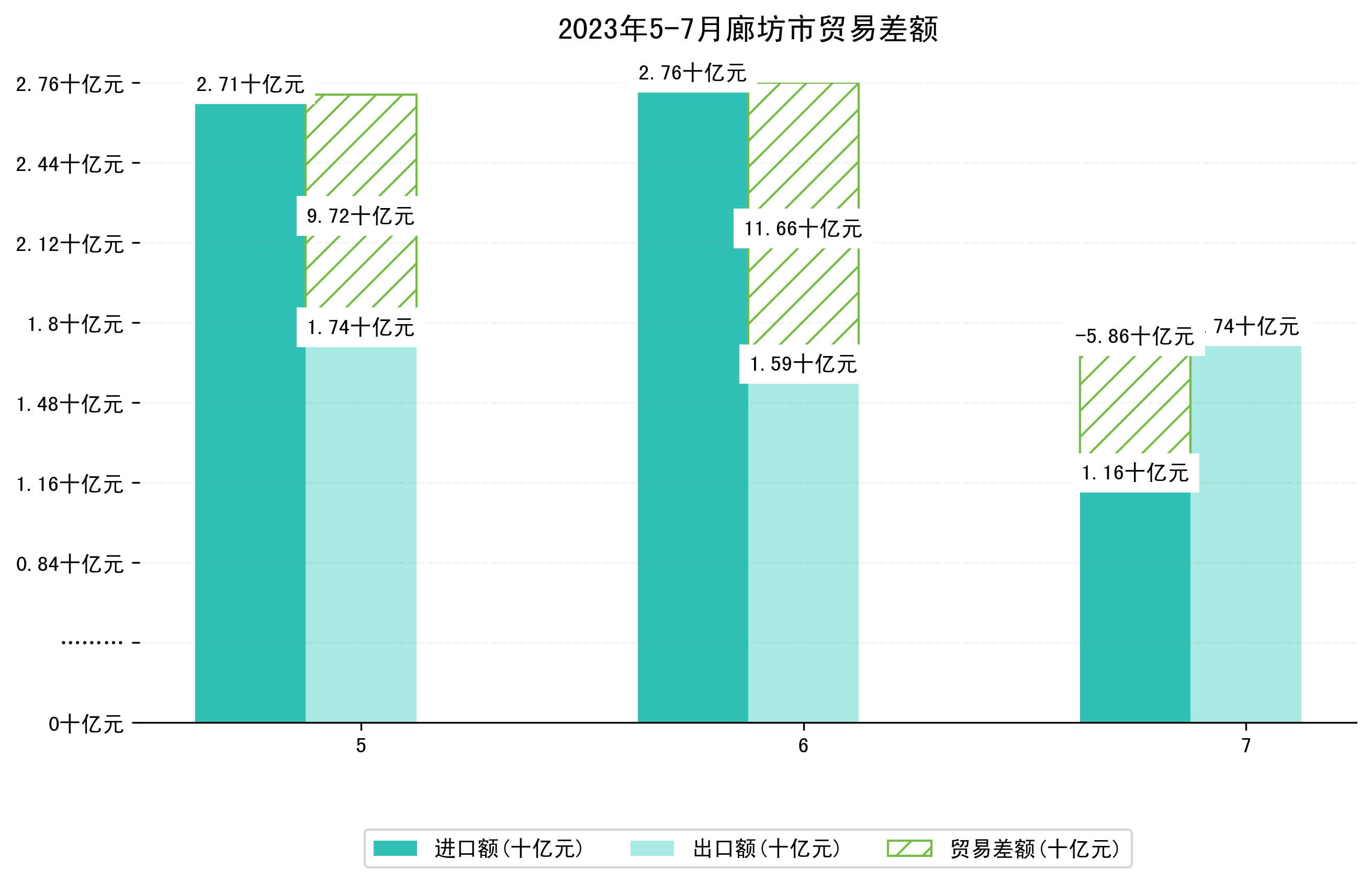 2023年7月廊坊市进出口总额及进出口差额统计分析