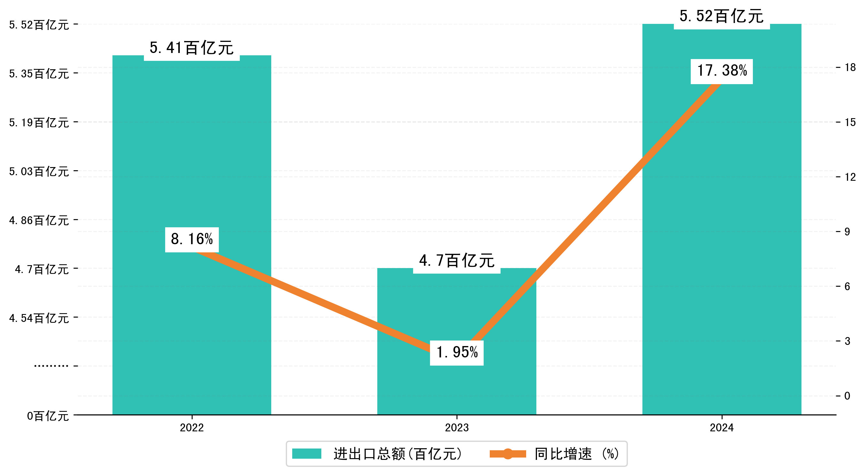 以人民币计,2024年1-12月廊坊市进出口总额为551,6864.3424万元,相比上年同期增加了81,7024.0585万元,同比增加了17.60%。