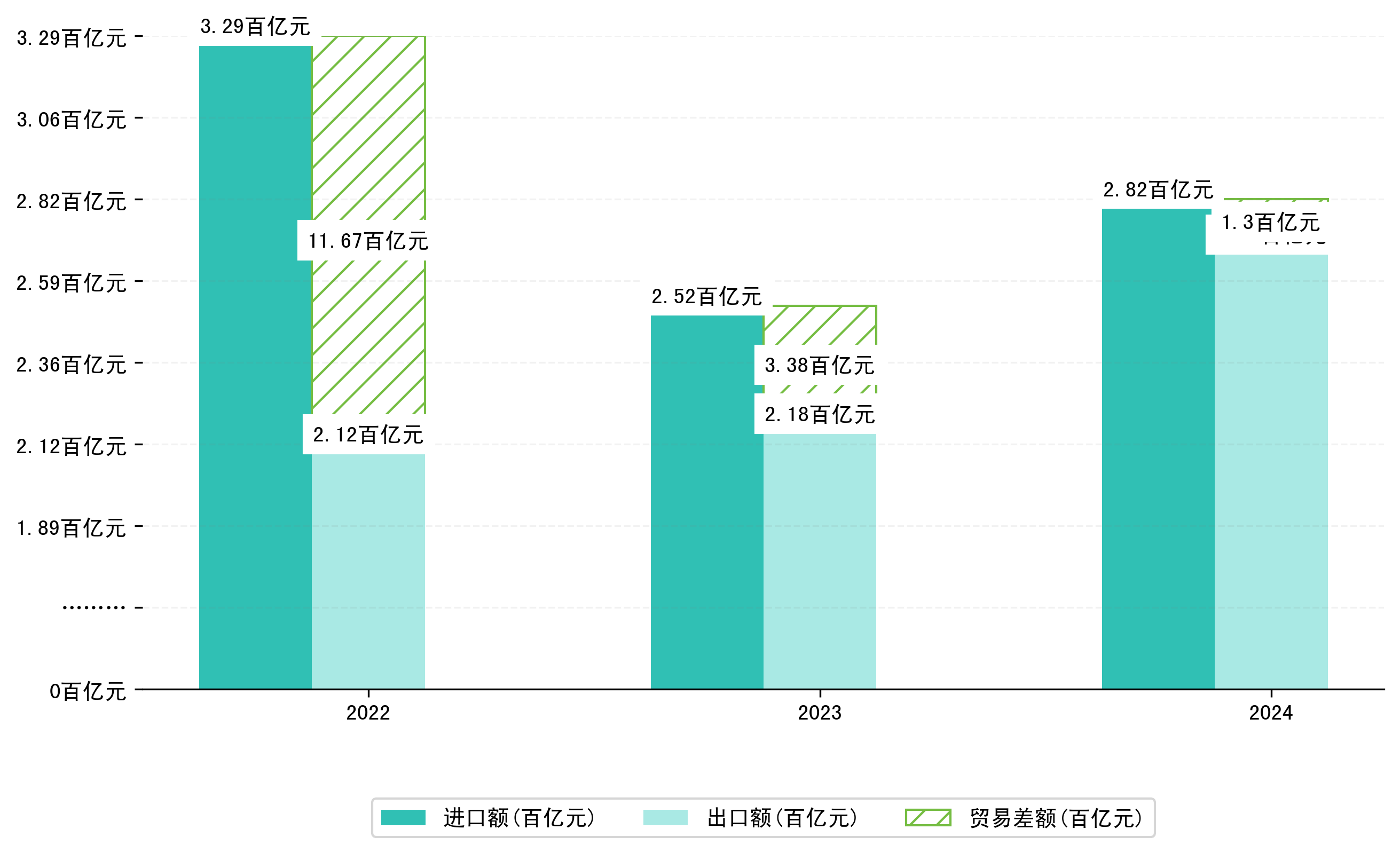 以人民币计,2024年1-12月廊坊市贸易差额为13,0423,7760万元(贸易逆差),相比上年同期增加了20,7223,6810万元,同比增加-61.37%。