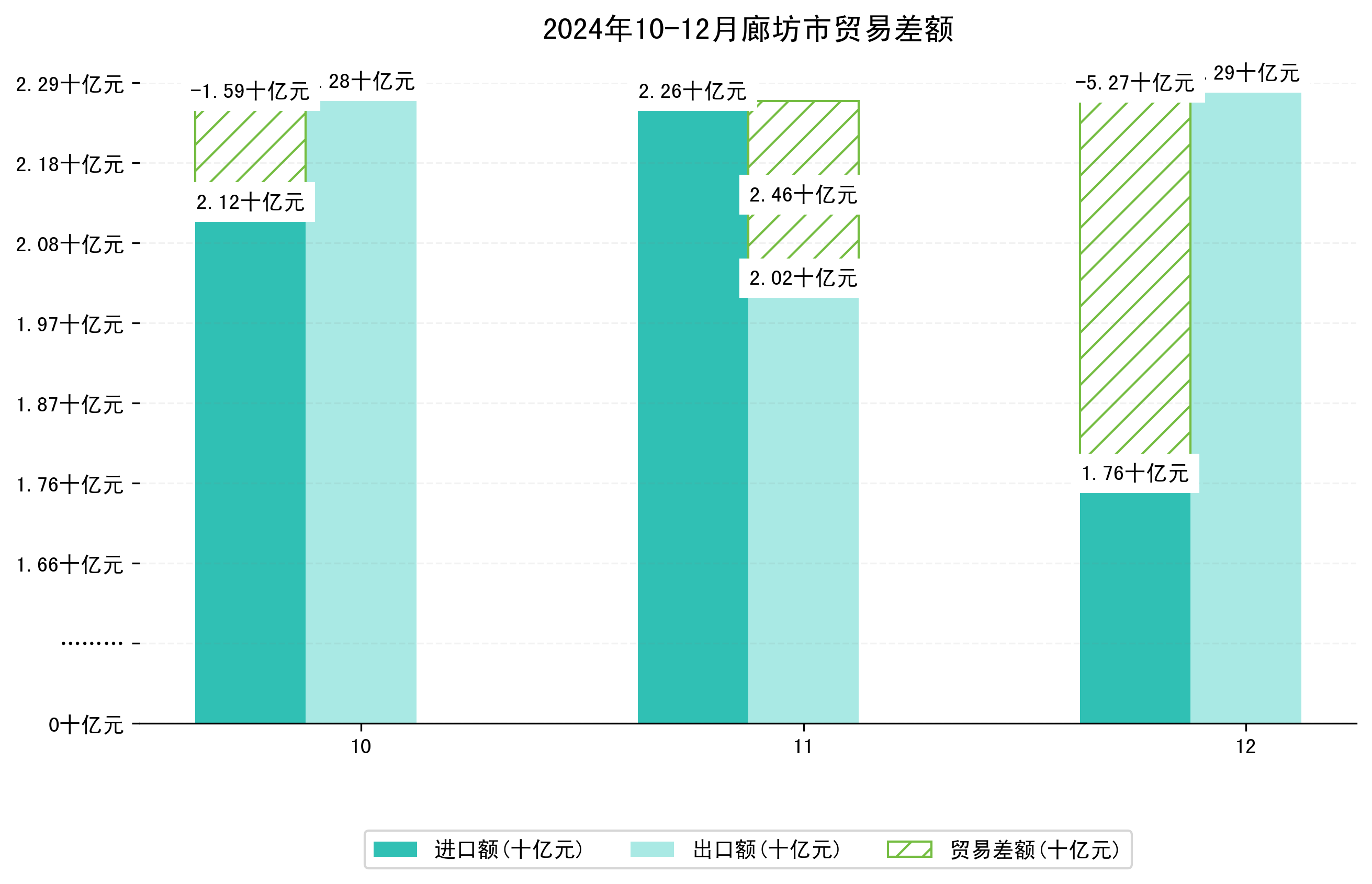 2024年12月廊坊市进出口总额及进出口差额统计分析
