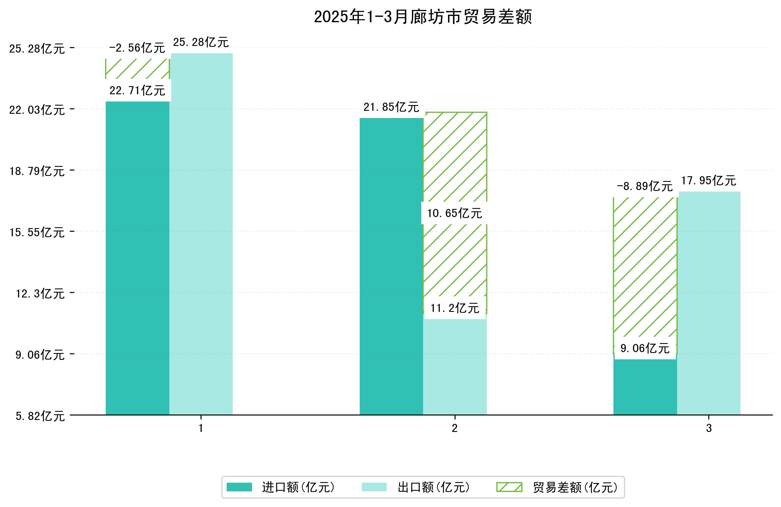 (图一:2025年1-3月廊坊市进出口总额)