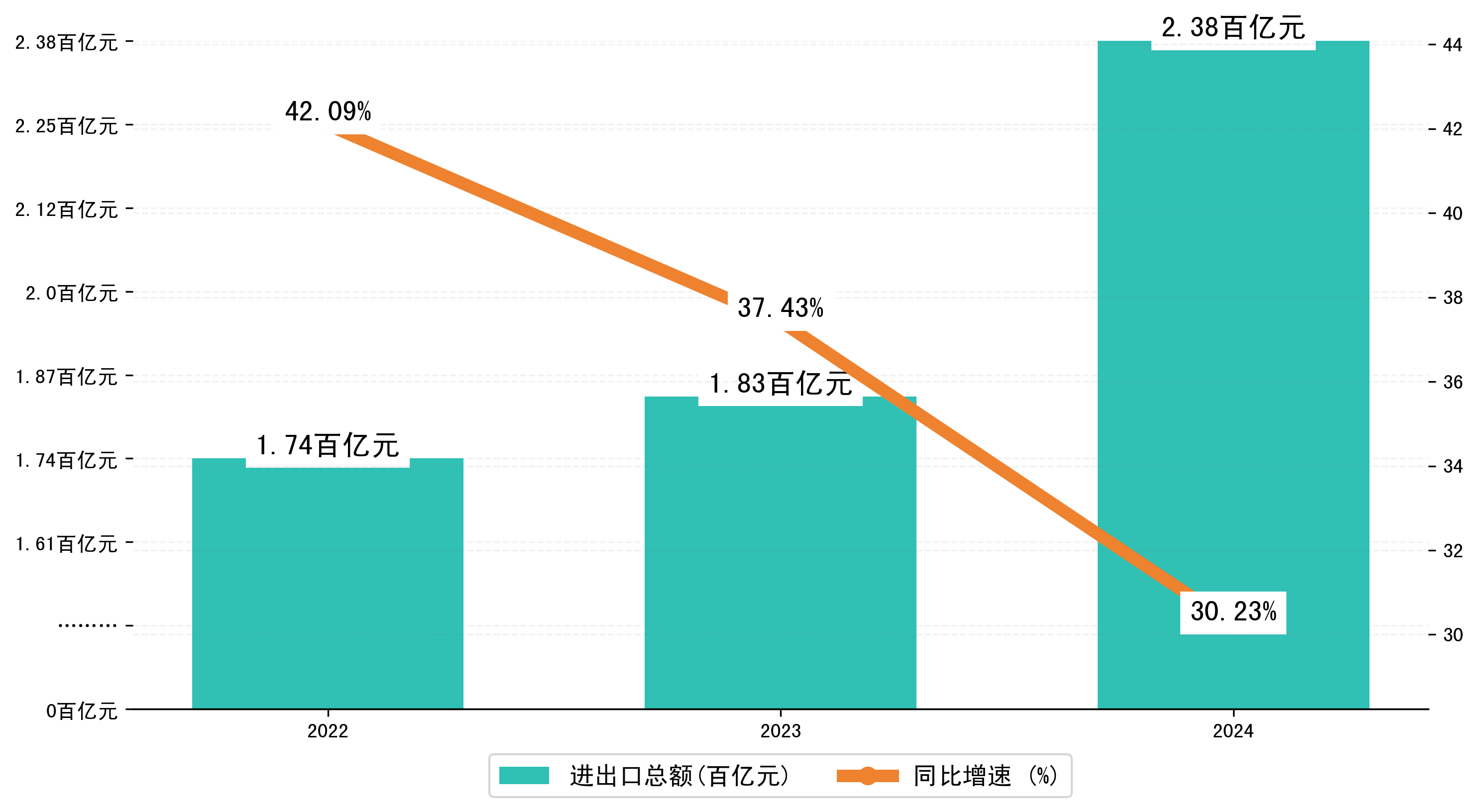 以人民币计,2024年1-5月廊坊市进出口总额为238,4718.1518万元,相比上年同期增加了55,3524.6478万元,同比增加了30.90%。