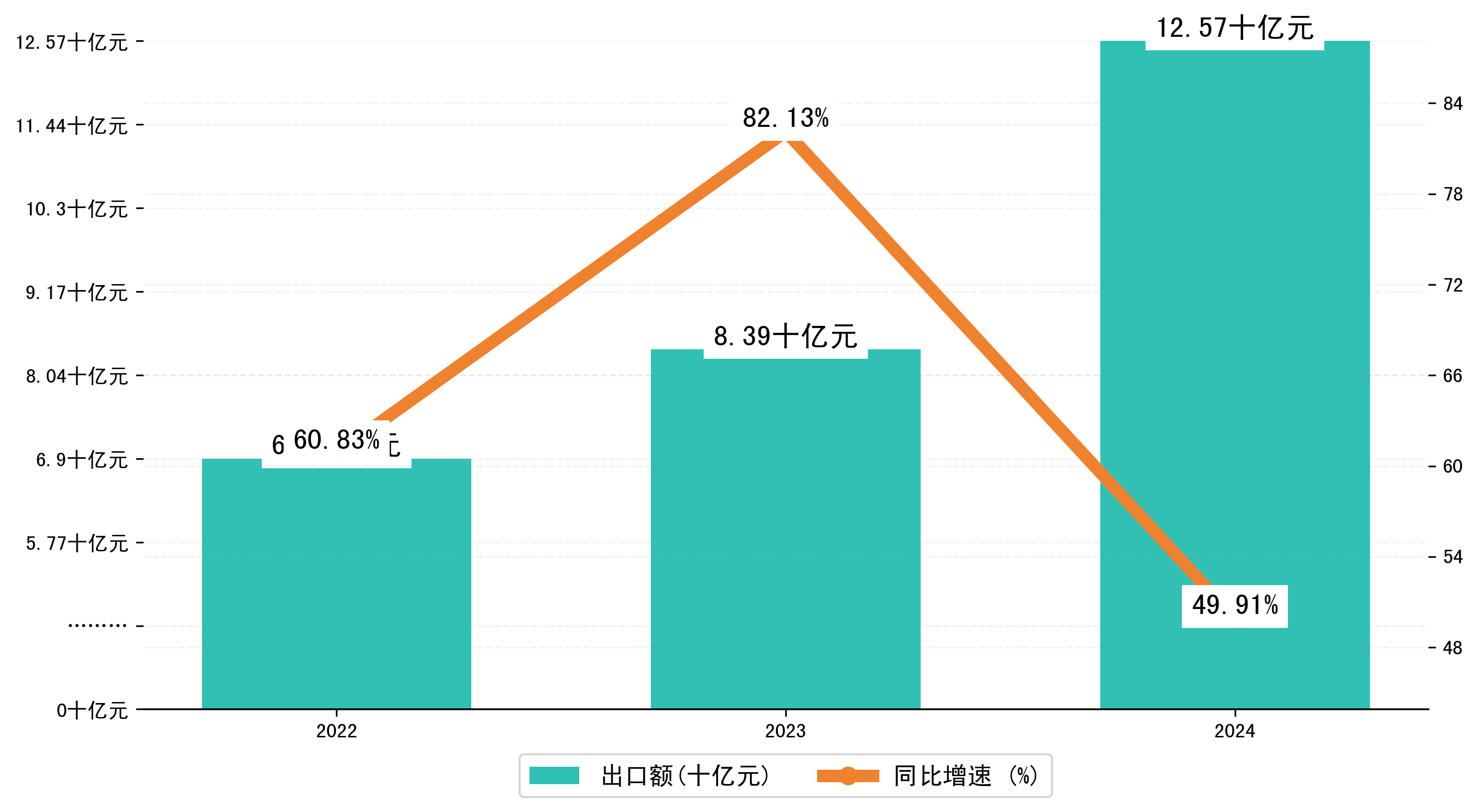 以人民币计,2024年1-5月廊坊市出口额为125,7018.4987万元,相比上年同期增加了41,8496.2753万元,同比增加了50.10%。