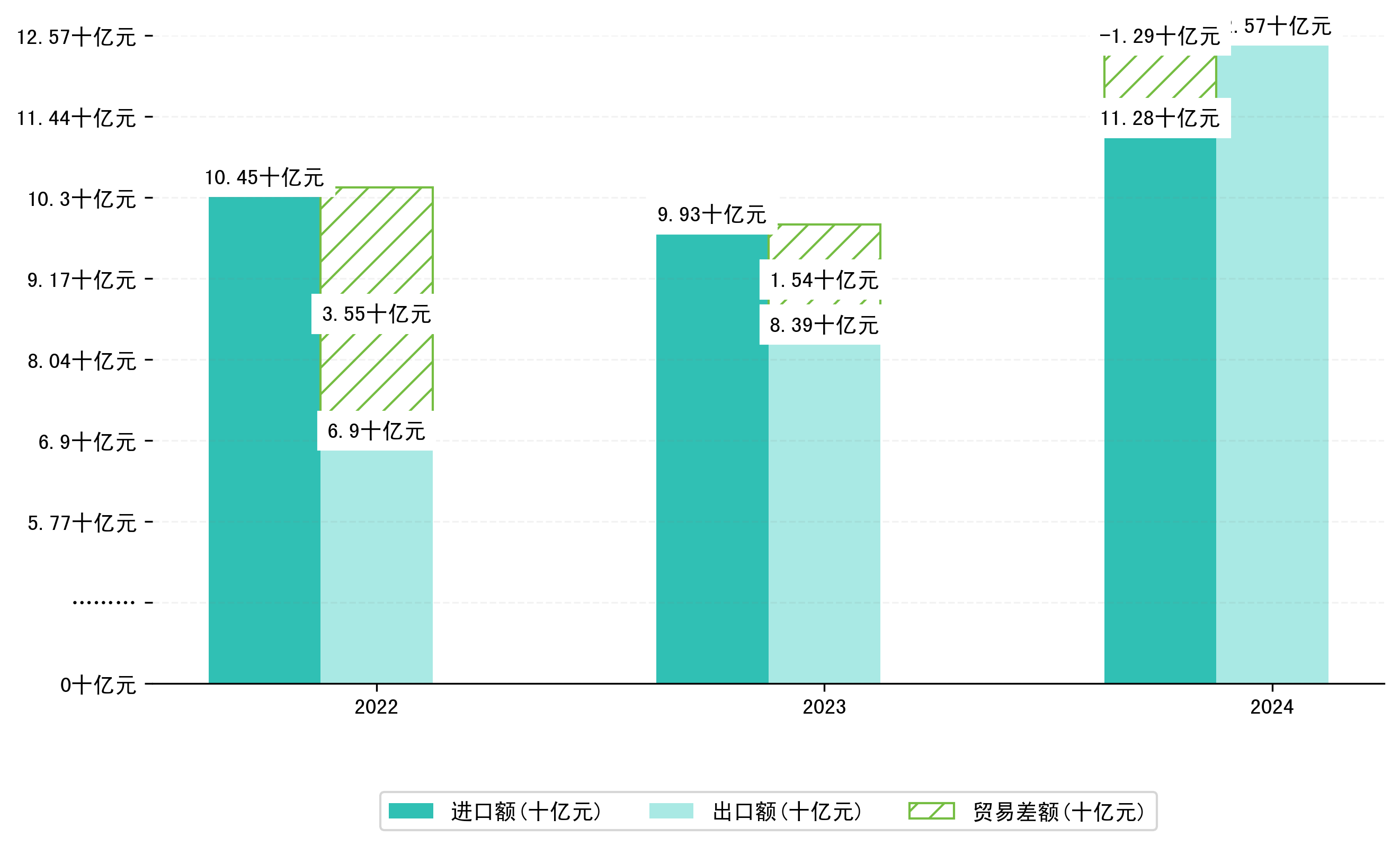 以人民币计,2024年5月廊坊市贸易差额为14,2315,9931万元(贸易逆差),相比上月减少了35,1296,0073万元,即4,9526,3708万美元;相比上年同期减少了4,5103,8638万元,同比减少46.4%。