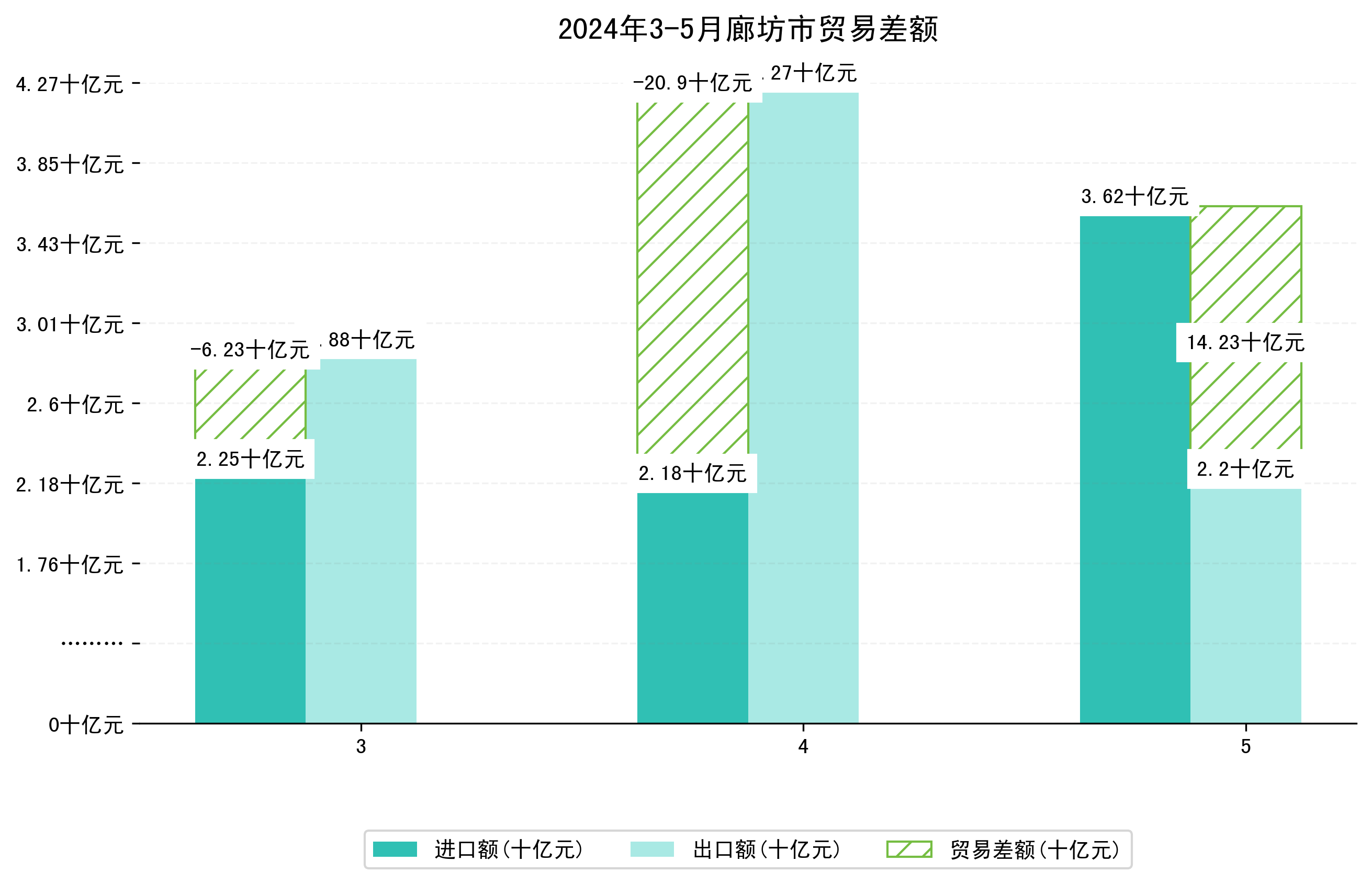 2024年5月廊坊市进出口总额及进出口差额统计分析