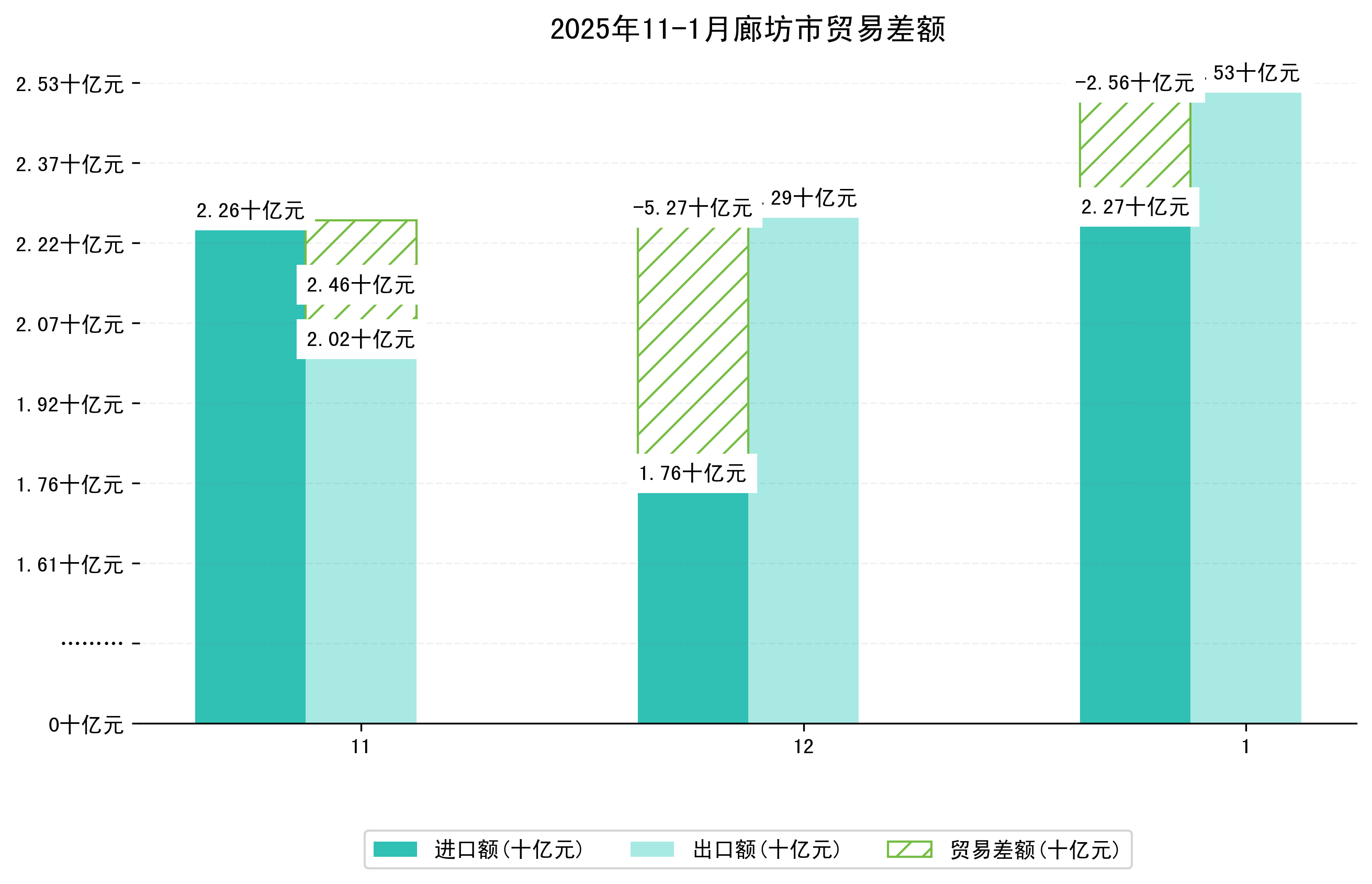 2025年1月廊坊市进出口总额及进出口差额统计分析