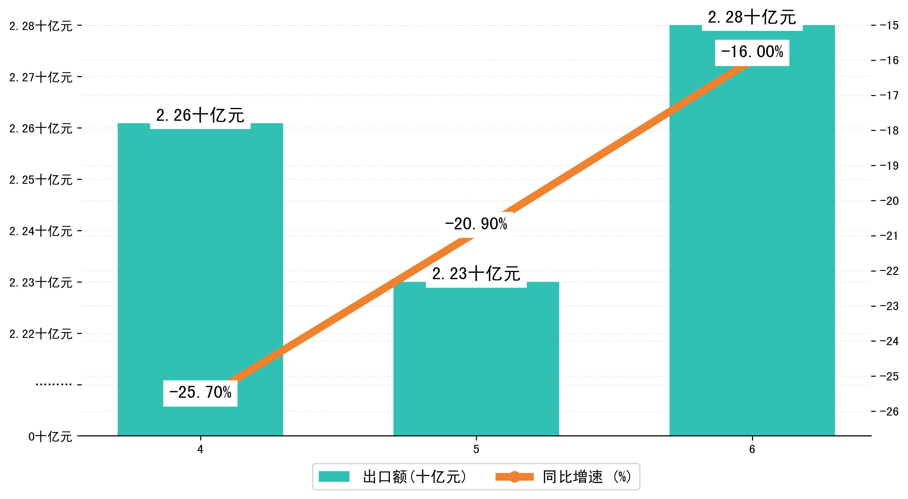 以人民币计,2025年6月廊坊市出口额为22,7912.5879万元,相比上月增加了4755.3634万元;相比上年同期增加了2,9421.2557万元,同比减少了-16.00%。