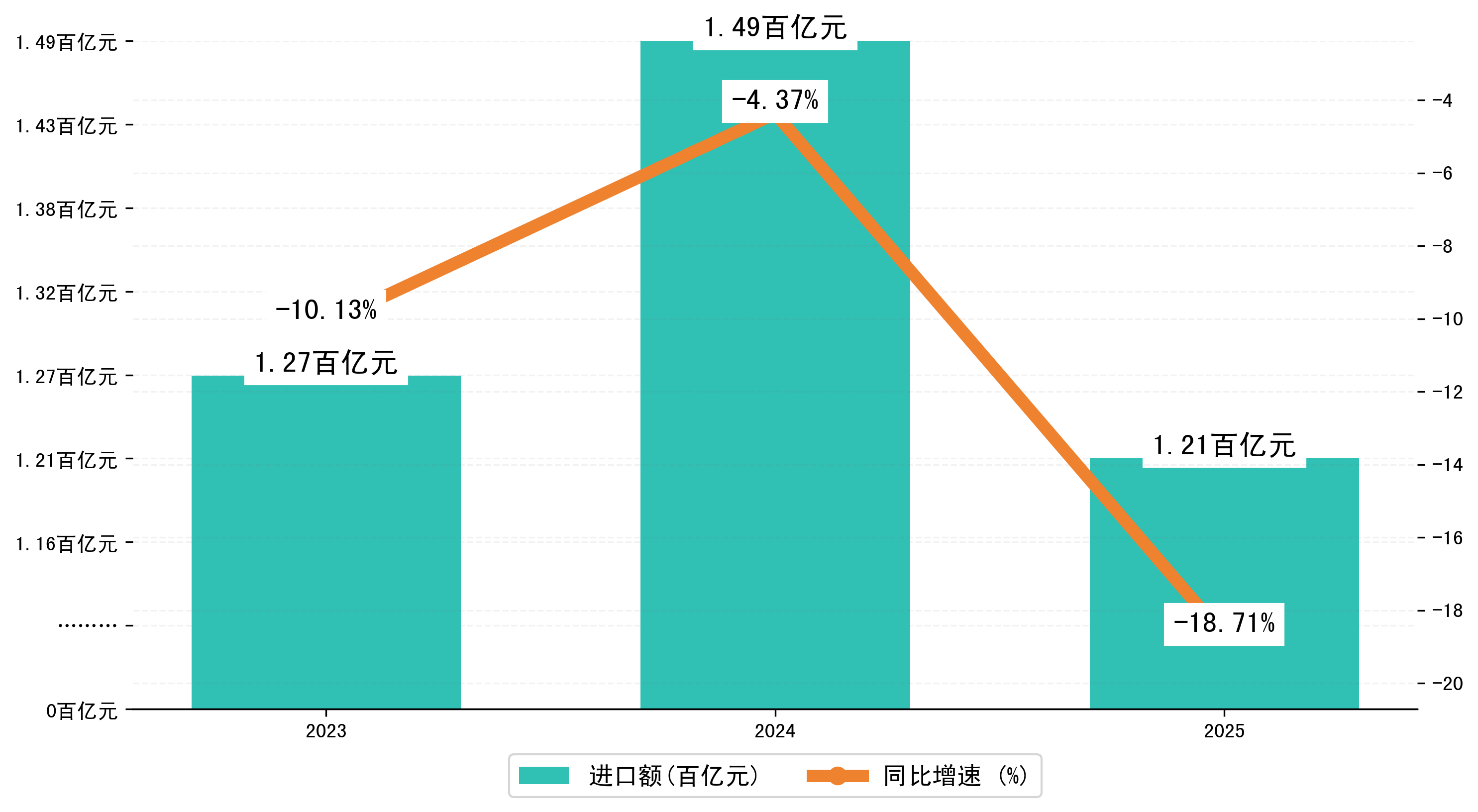 以人民币计,2025年1-6月廊坊市进口额为121,0926.7851万元,相比上年同期减少了27,8636.9748万元,同比减少了-18.70%。