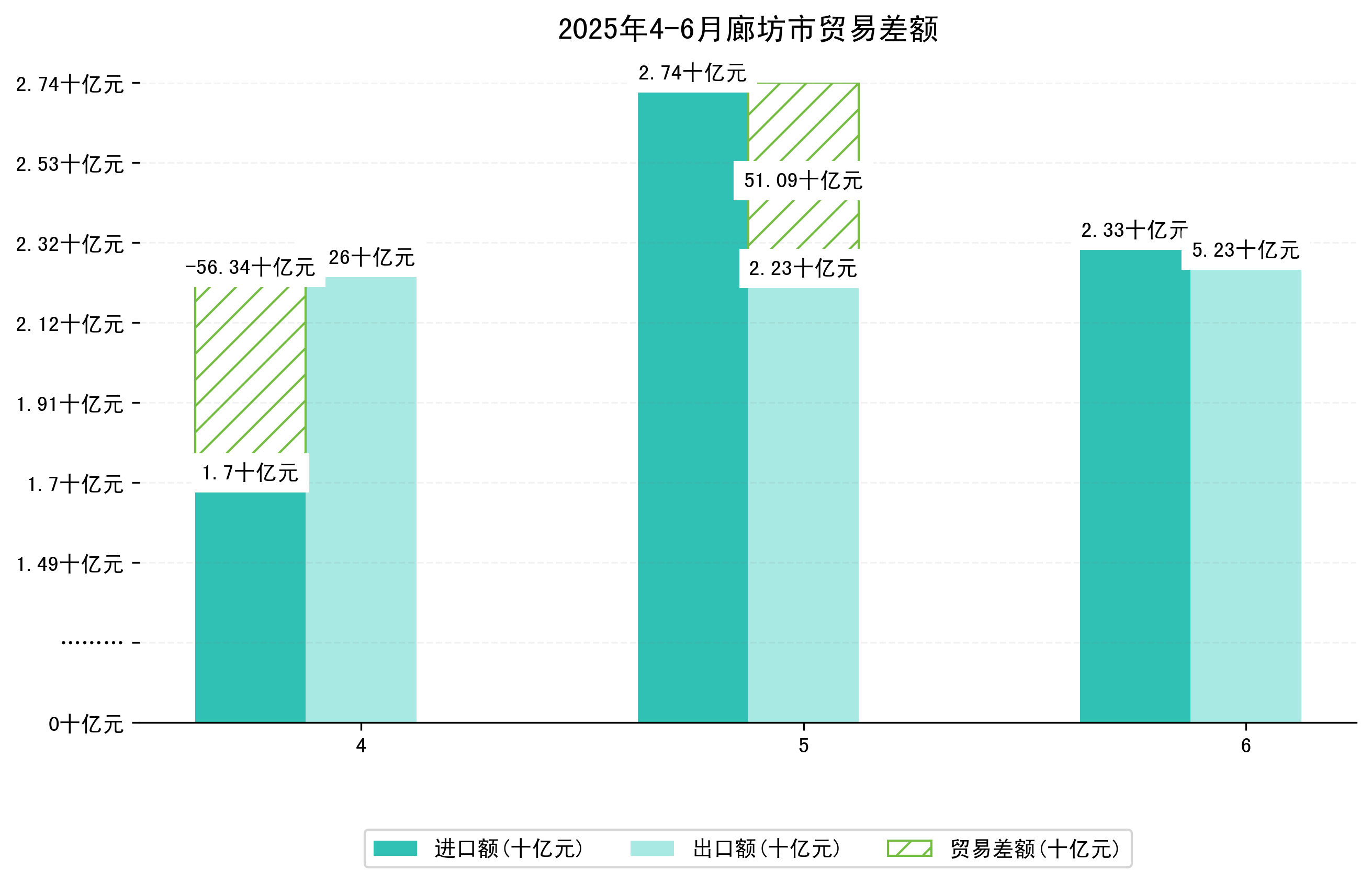 2025年6月廊坊市进出口总额及进出口差额统计分析