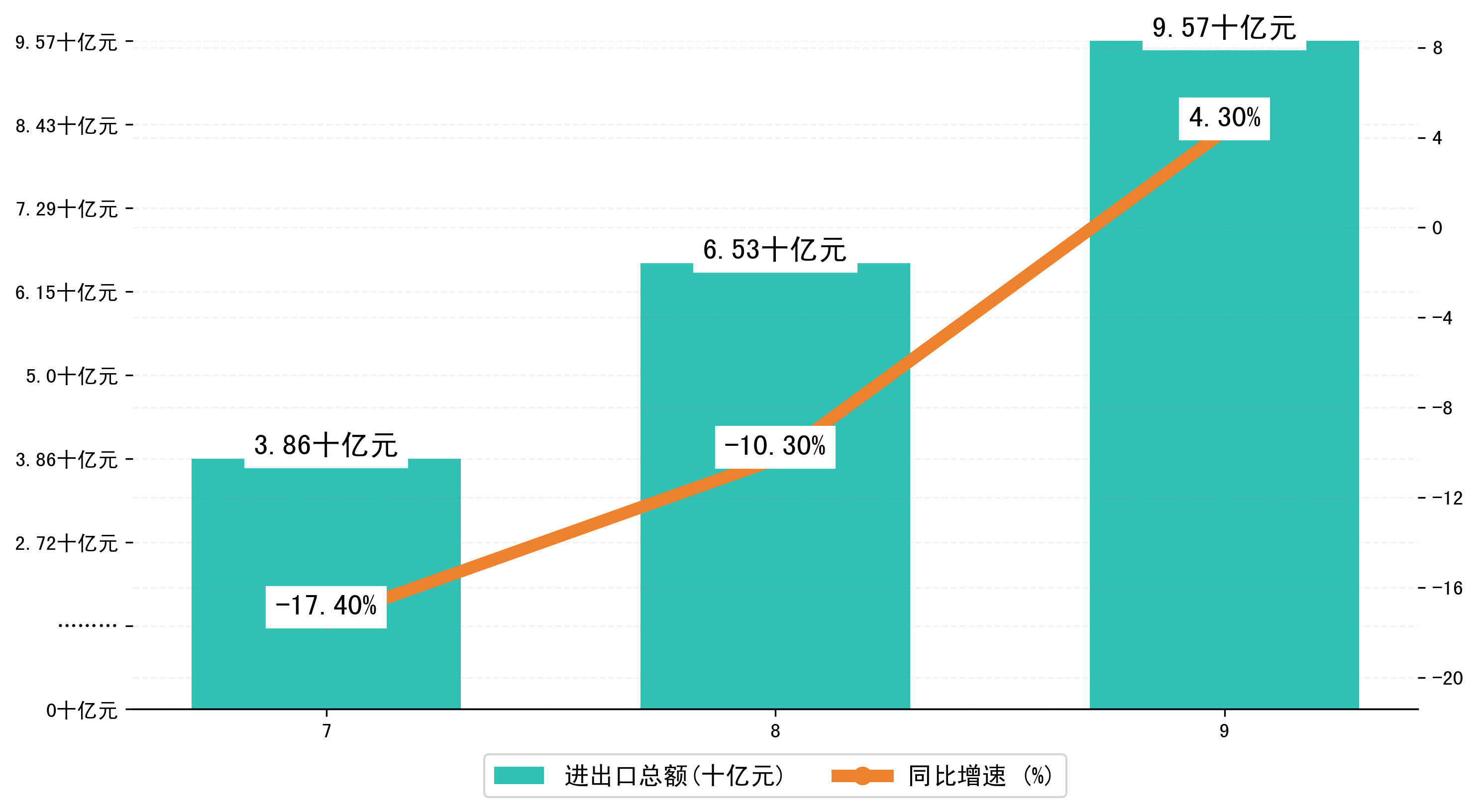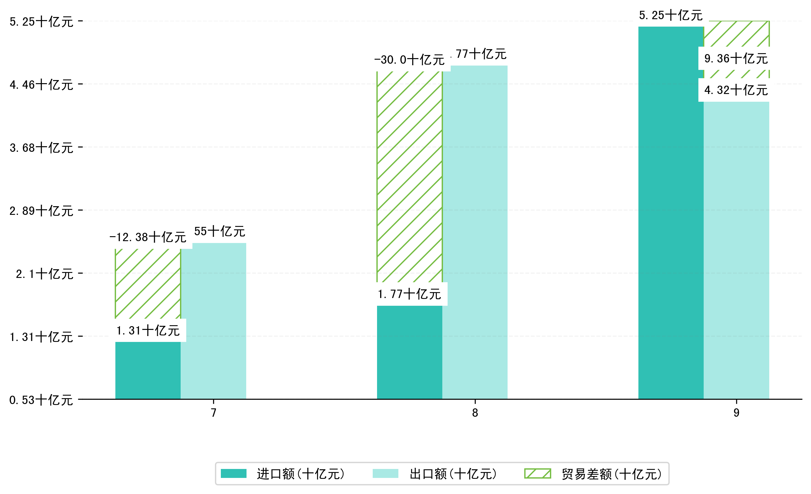 以人民币计,2025年9月廊坊市贸易差额为9,3604,1071万元(贸易逆差),相比上月减少了39,3632,4947万元,即5,5148,0805万美元;相比上年同期减少了7,9747,1213万元,同比减少575.5%。