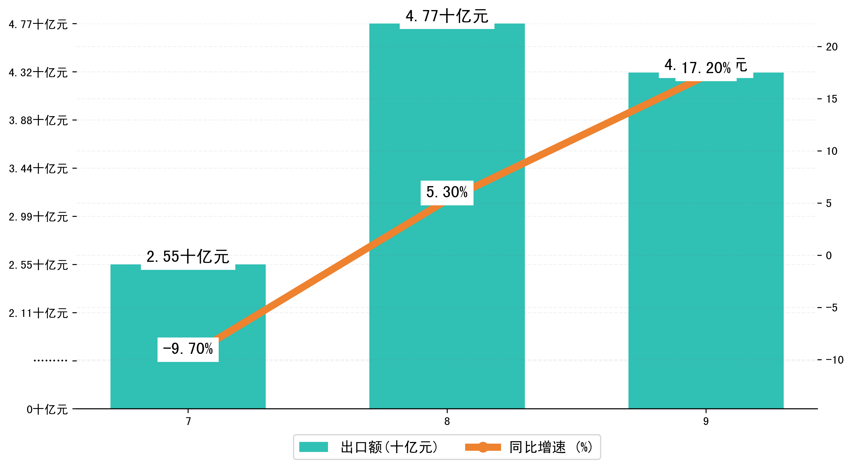 以人民币计,2025年1-9月廊坊市出口额为238,4985.1974万元,相比上年同期增加了34,9915.7636万元,同比增加了17.20%。