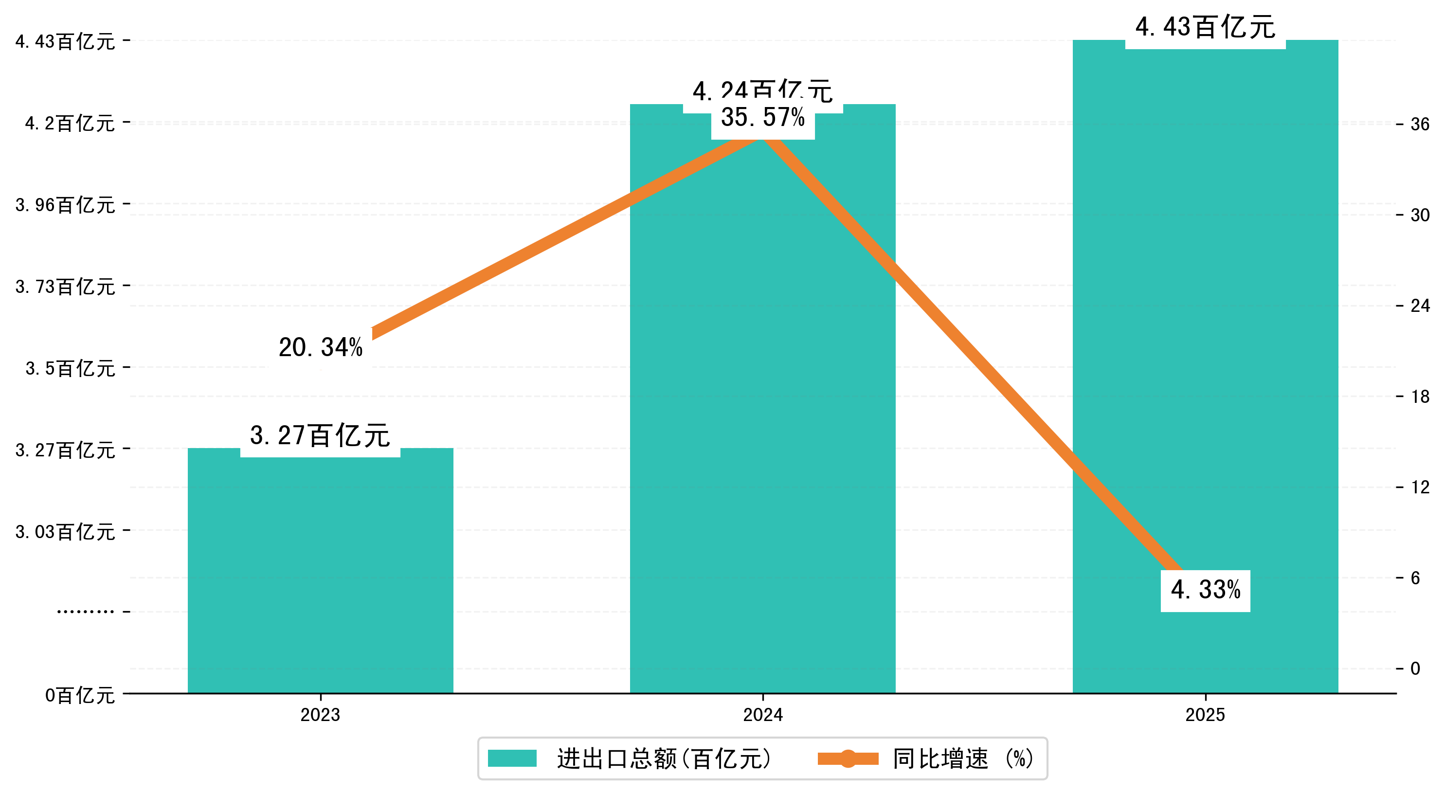 以人民币计,2025年1-9月廊坊市进出口总额为442,8160.8086万元,相比上年同期增加了18,3762.3538万元,同比增加了4.30%。