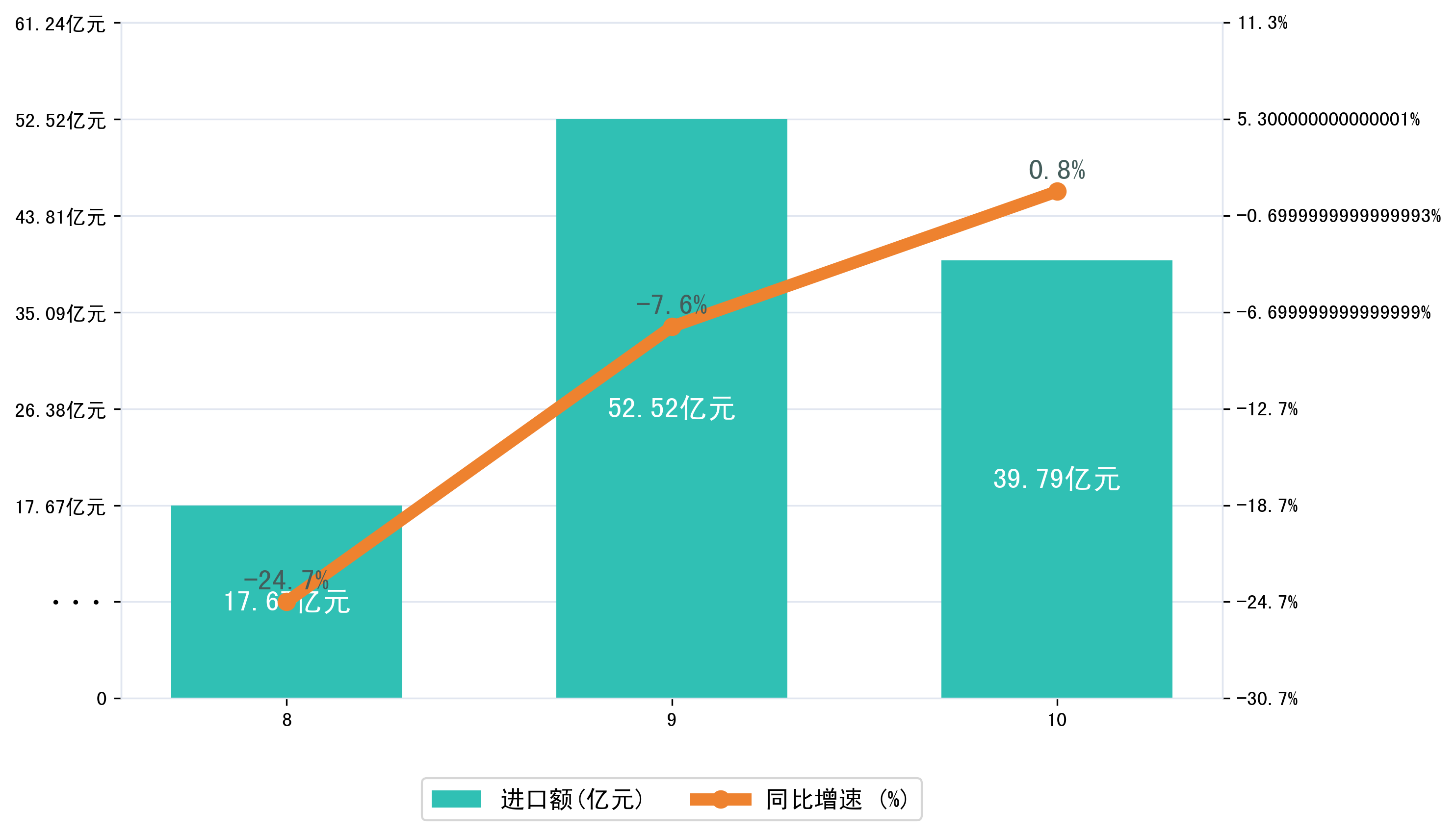 以美元计,2025年1-10月廊坊市进口额为34,1095.2114万美元,相比上年同期增加了486.8528万美元,同比增加0.10%。