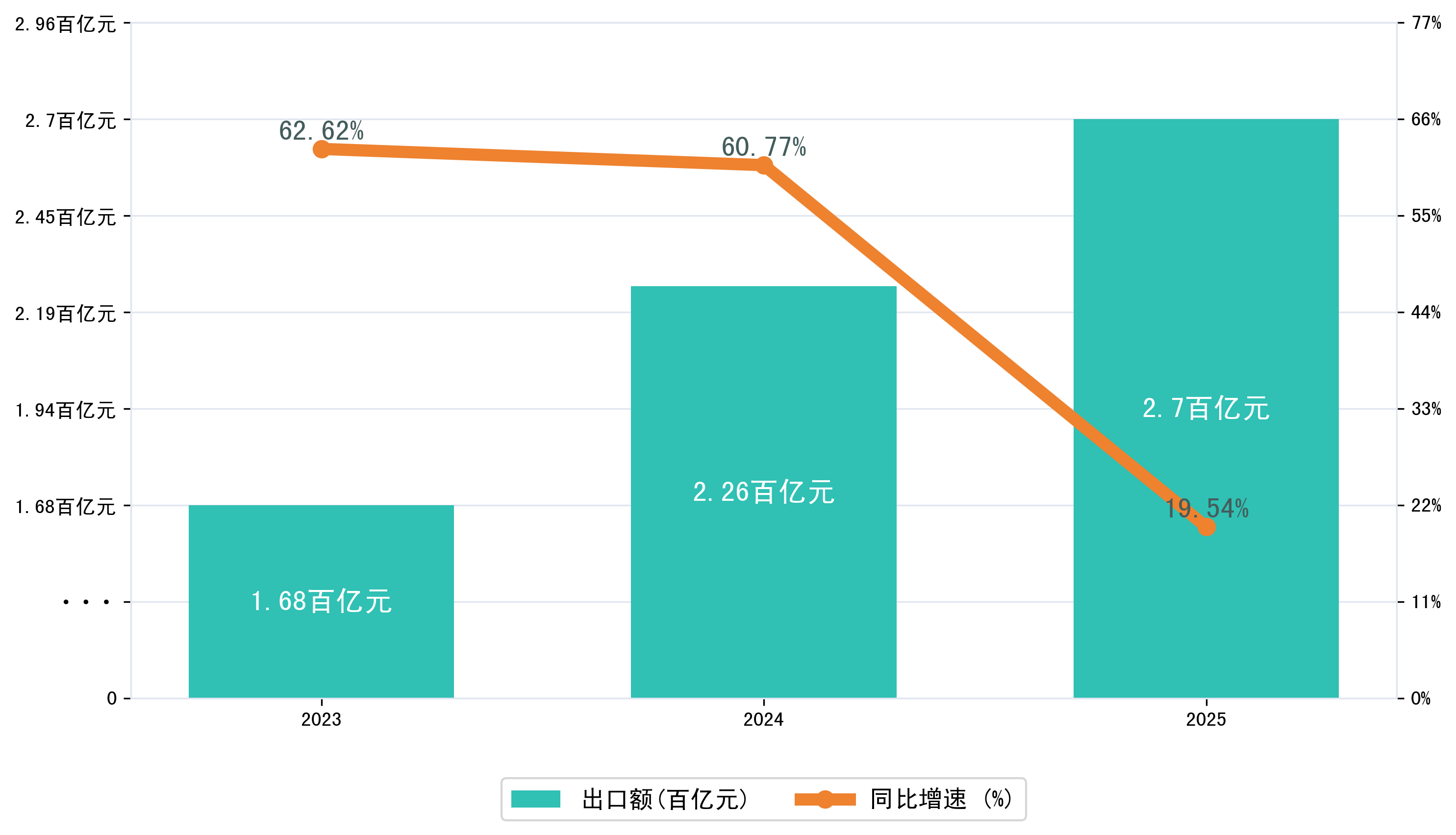 以人民币计,2025年1-10月廊坊市出口额为270,4978.9959万元,相比上年同期增加了44,2139.9978万元,同比增加了19.60%。