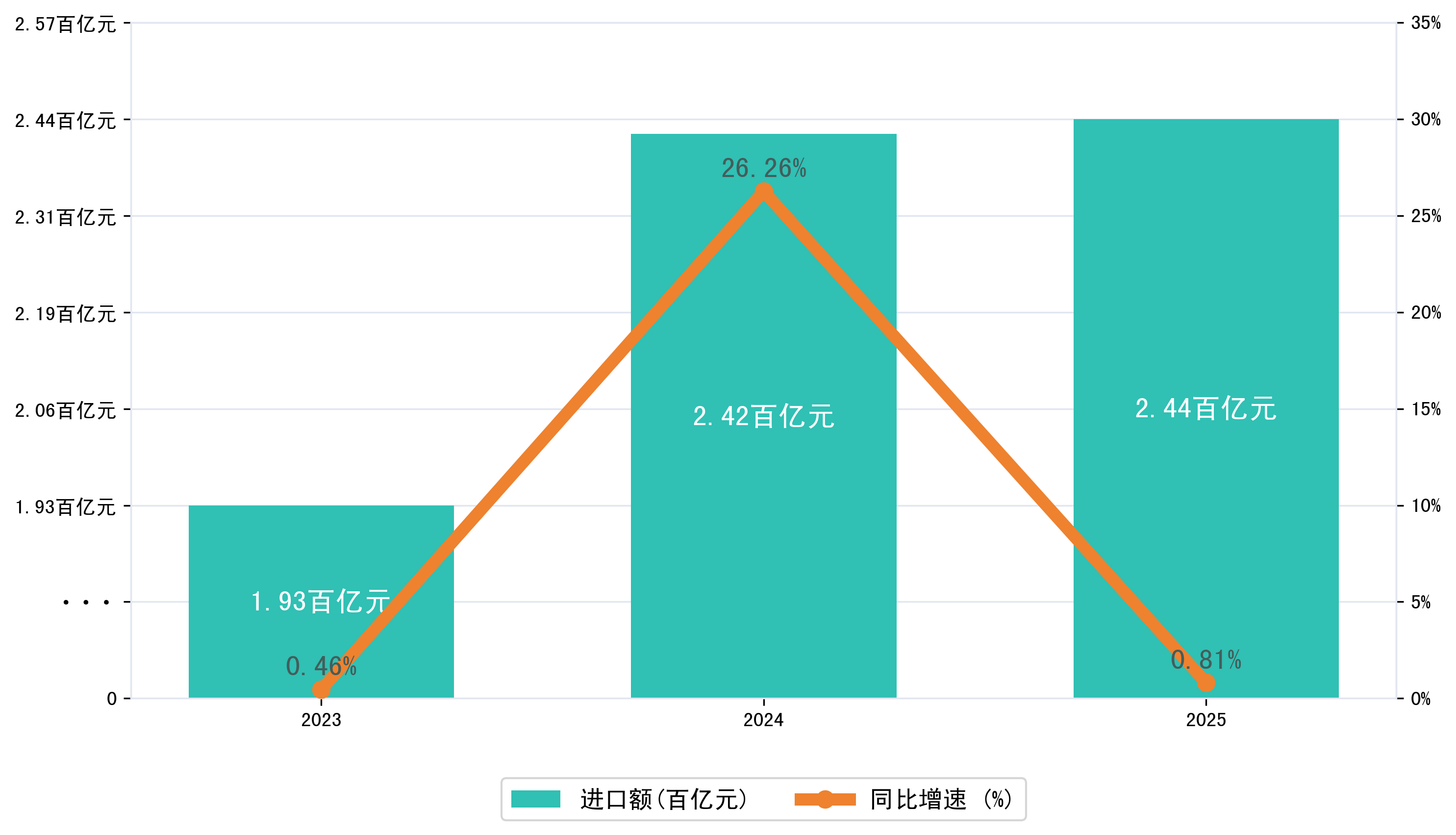 以人民币计,2025年1-10月廊坊市进口额为244,1130.8219万元,相比上年同期增加了1,9544.4839万元,同比增加了0.80%。