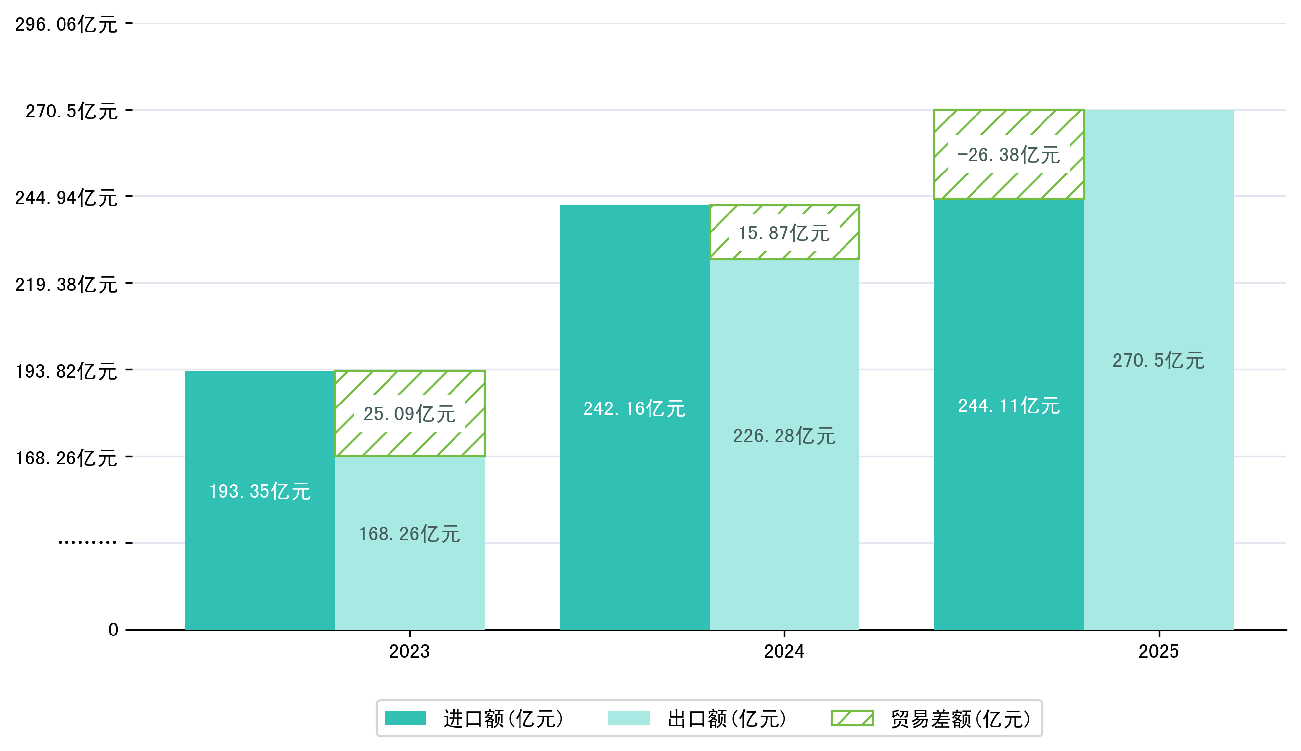 以美元计,2025年1-10月廊坊市贸易差额为3,6514,0784万美元(贸易顺差),相比上年同期增加了5,8709,0456万美元,同比增加-264.52%。