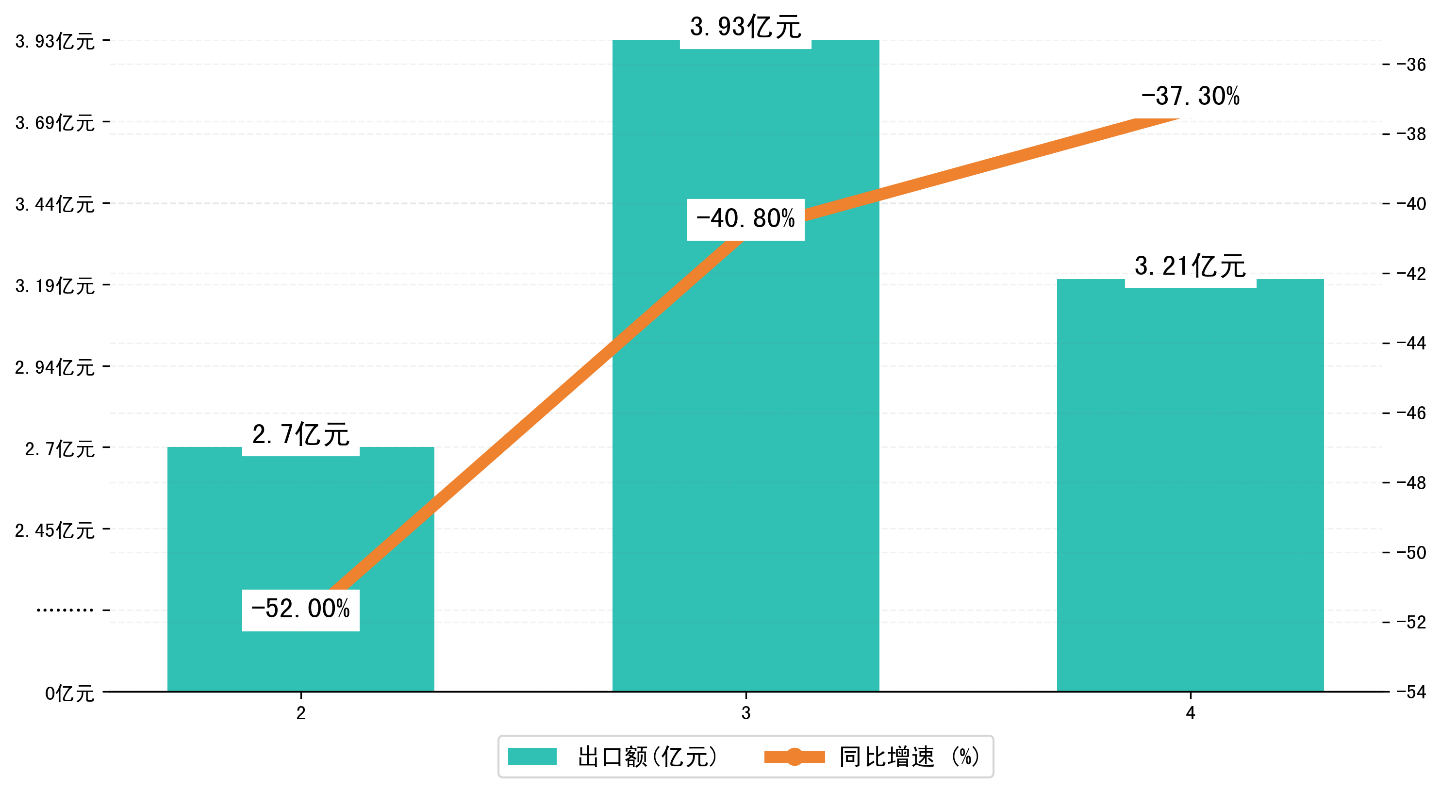 以人民币计,2024年1-4月兰州市出口额为12,5299.9028万元,相比上年同期减少了15,3909.9428万元,同比减少了-37.30%。