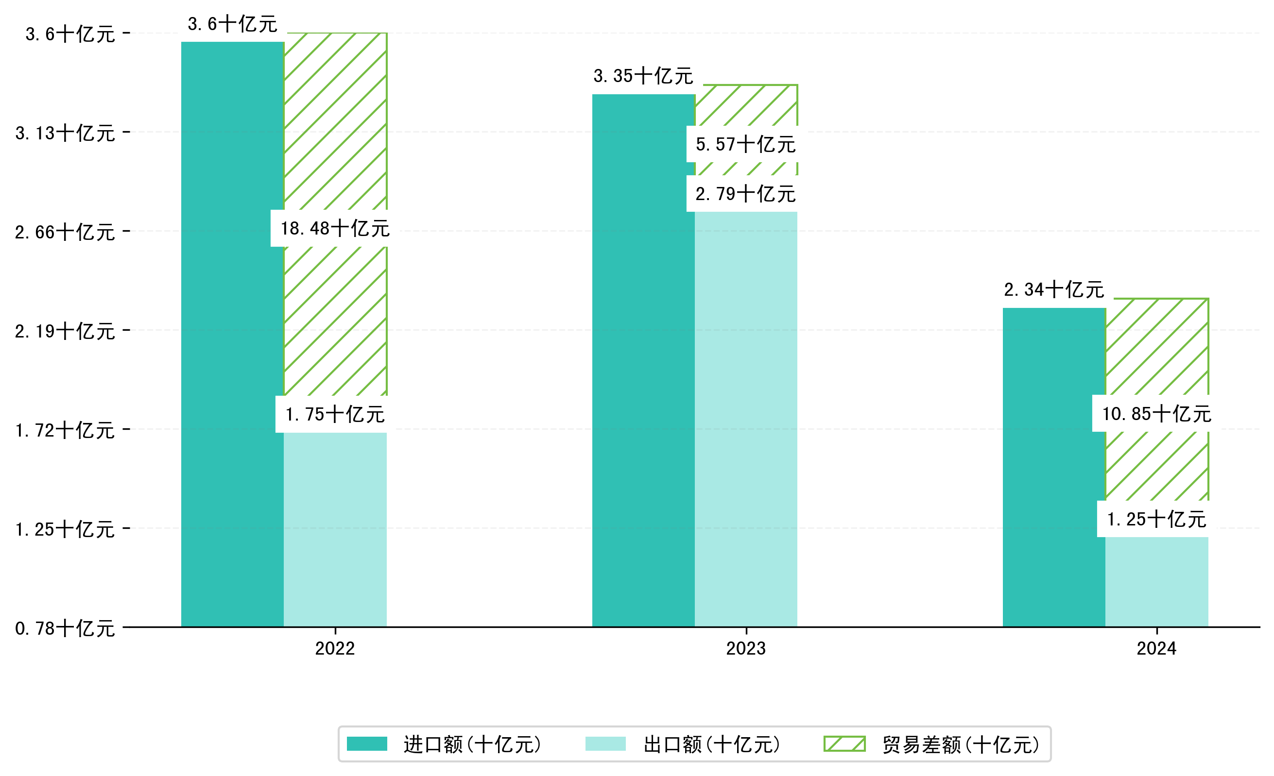 以美元计,2024年1-4月兰州市贸易差额为1,5268,4973万美元(贸易逆差),相比上年同期减少了6761,3402万美元,同比减少79.48%。