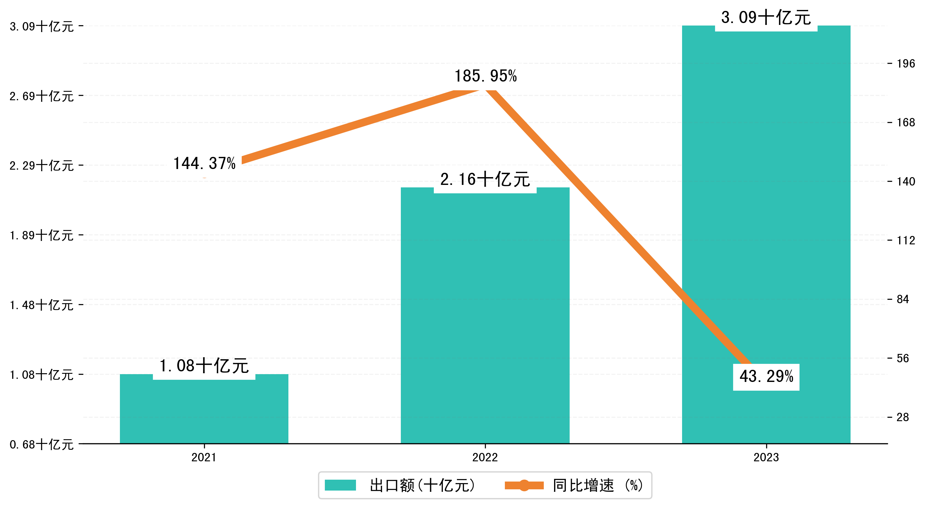 以人民币计,2023年1-5月兰州市出口额为30,9227.867万元,相比上年同期增加了9,3426.5878万元,同比增加了44.10%。