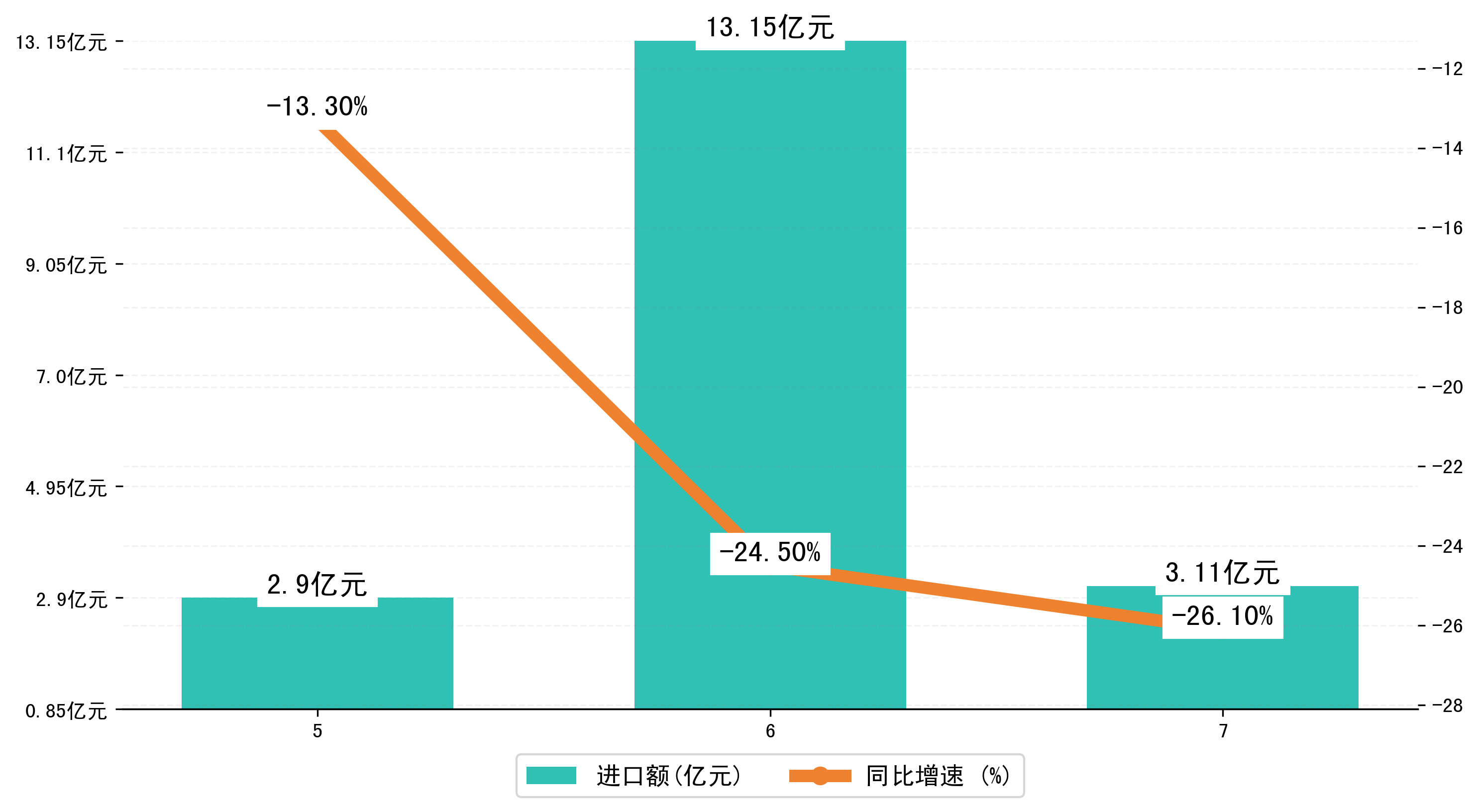 (图三:2023年5-7月兰州市进口额)