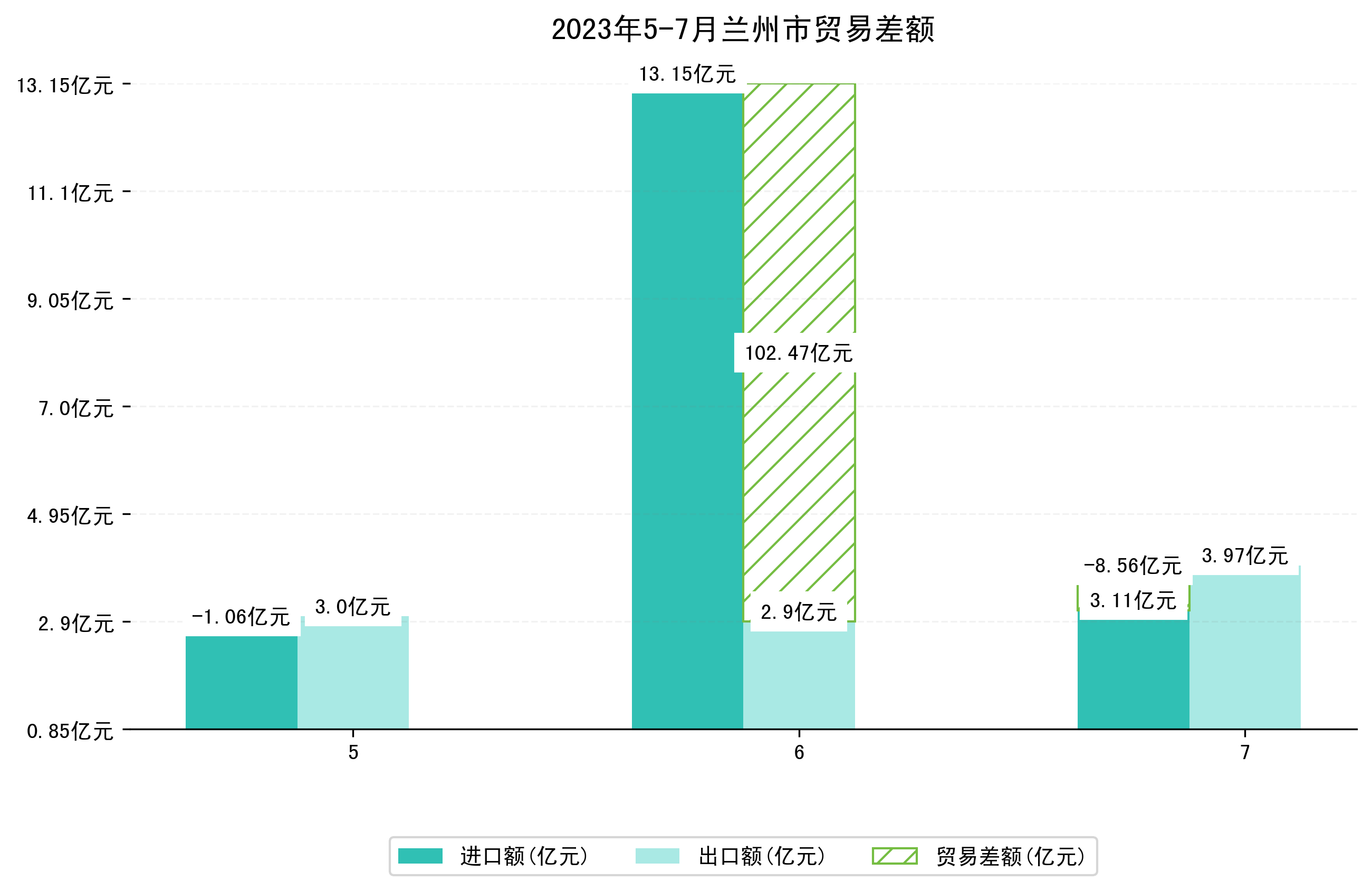 (图一:2023年5-7月兰州市进出口总额)