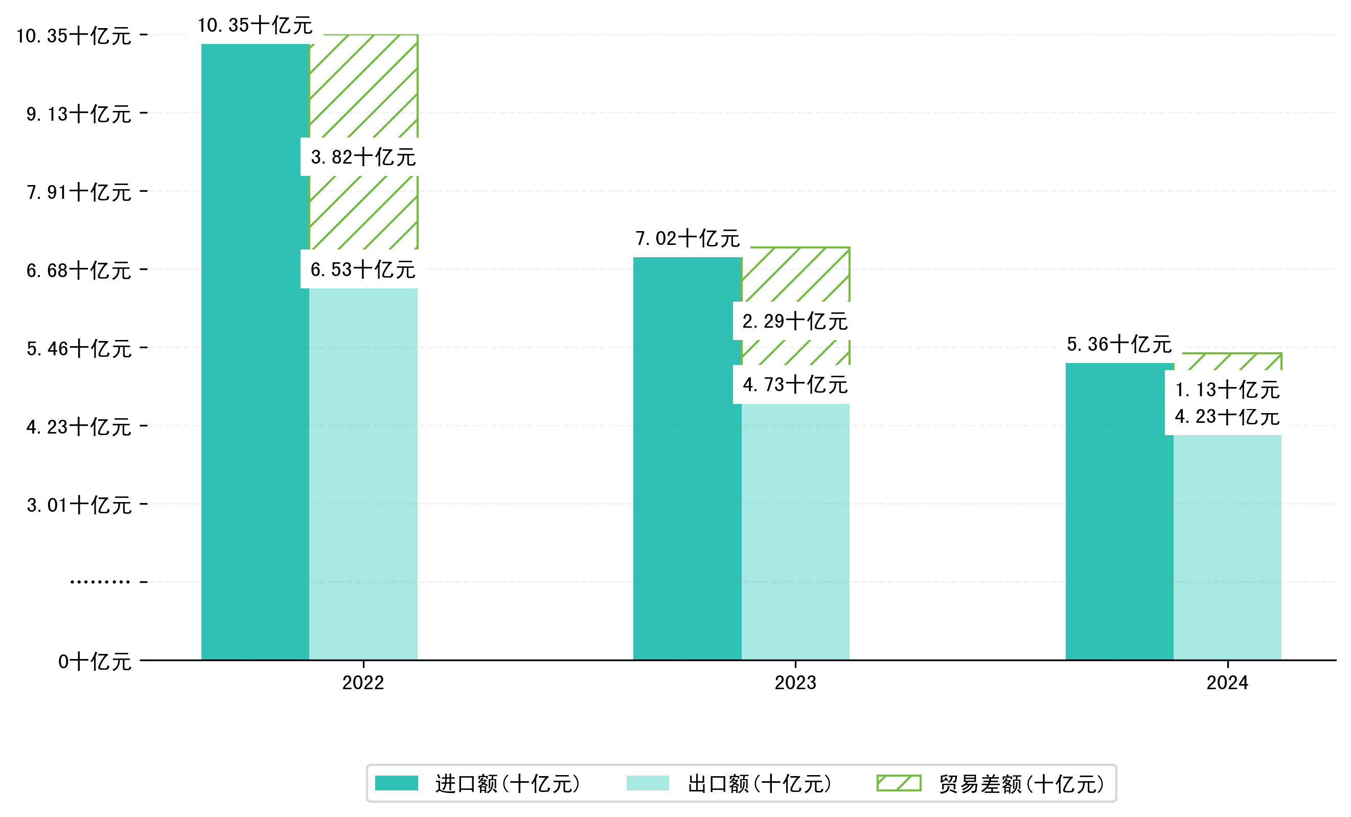 以人民币计,2024年1-12月兰州市贸易差额为11,2838,5029万元(贸易逆差),相比上年同期增加了11,6331,7798万元,同比增加-50.76%。