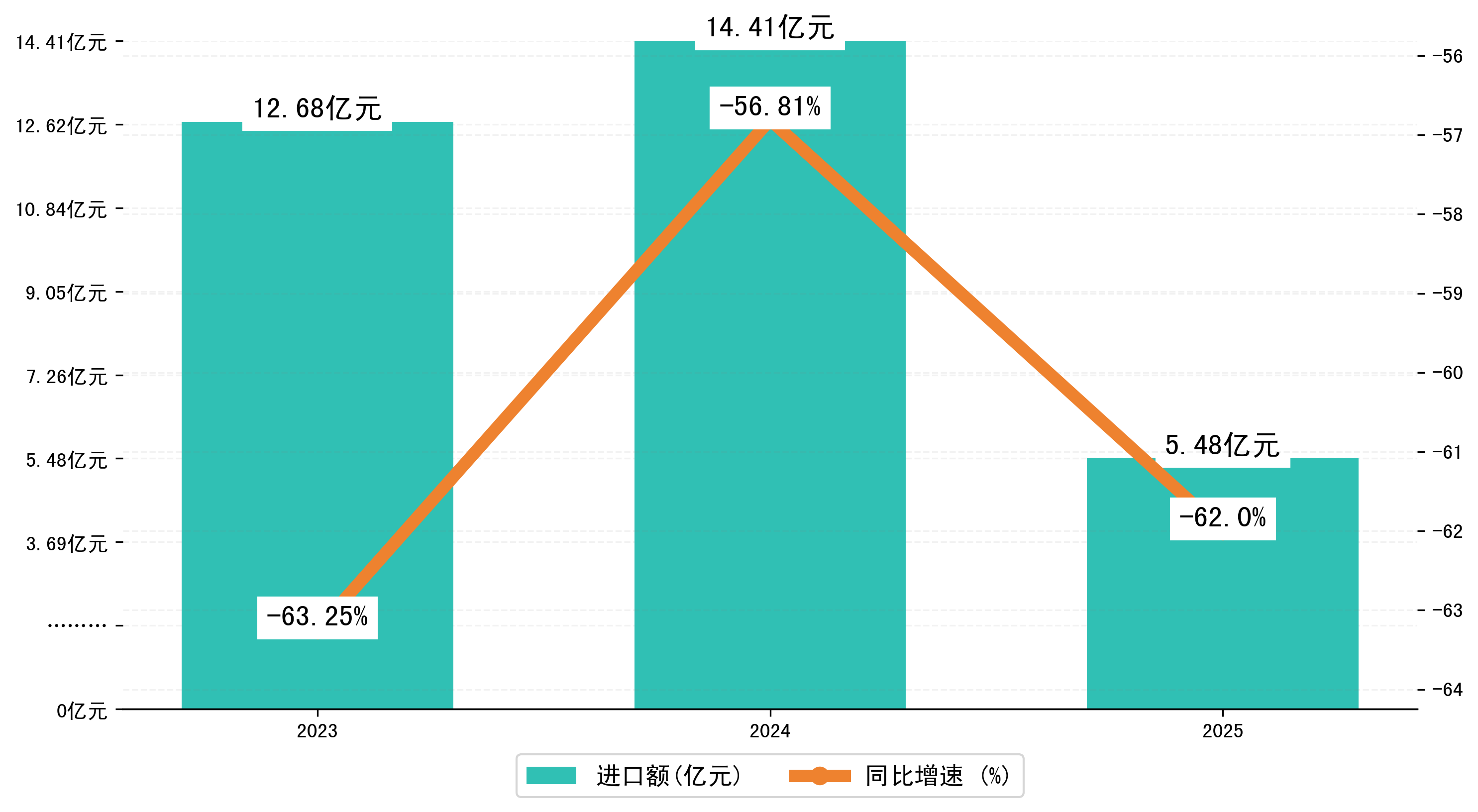 以人民币计,2025年1-2月兰州市进口额为5,4755.5938万元,相比上年同期减少了8,9351.8772万元,同比减少了-51.40%。