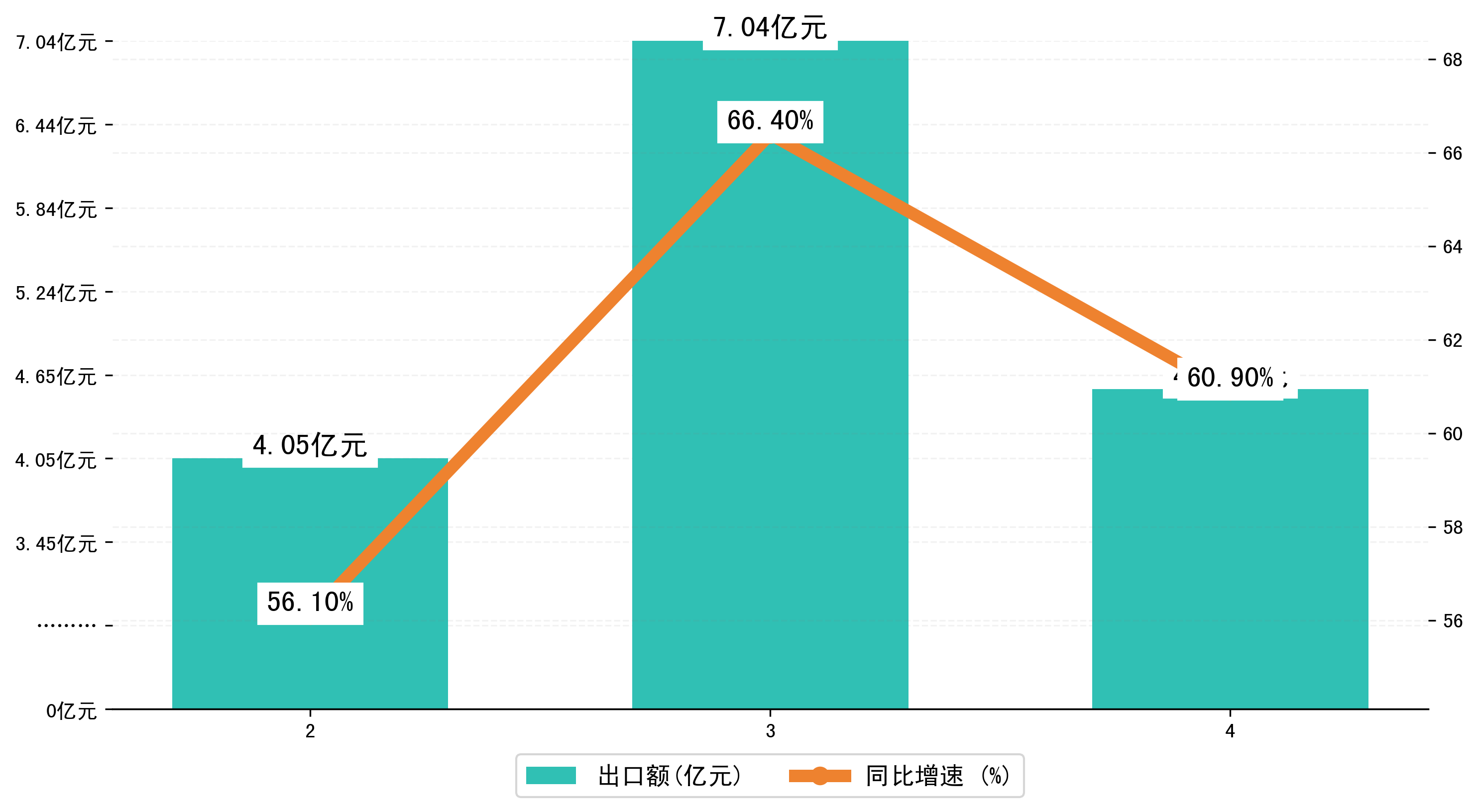 以人民币计,2023年1-4月兰州市出口额为27,9209.8456万元,相比上年同期增加了10,4430.8529万元,同比增加了60.90%。
