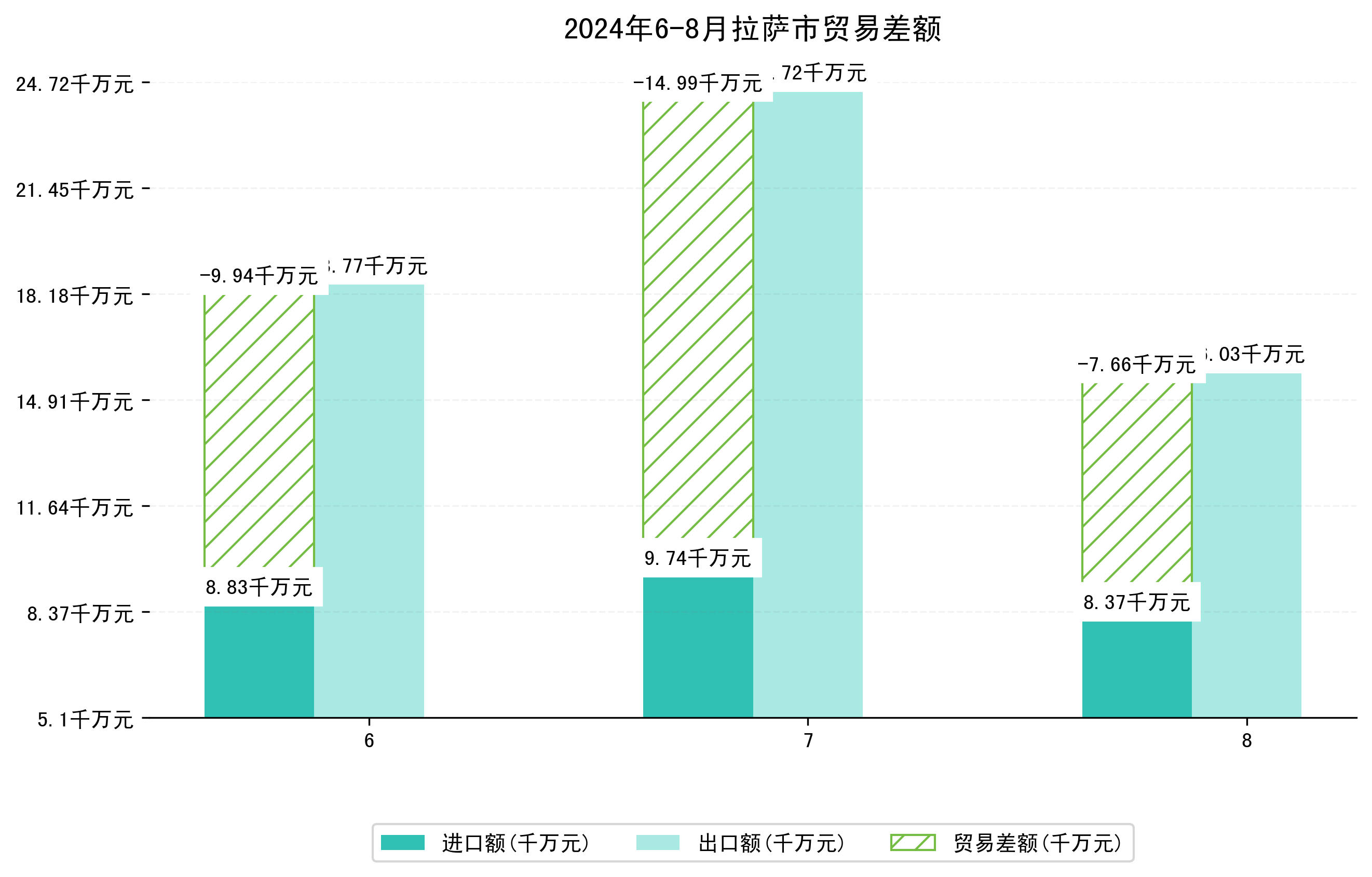2024年8月拉萨市进出口总额及进出口差额统计分析