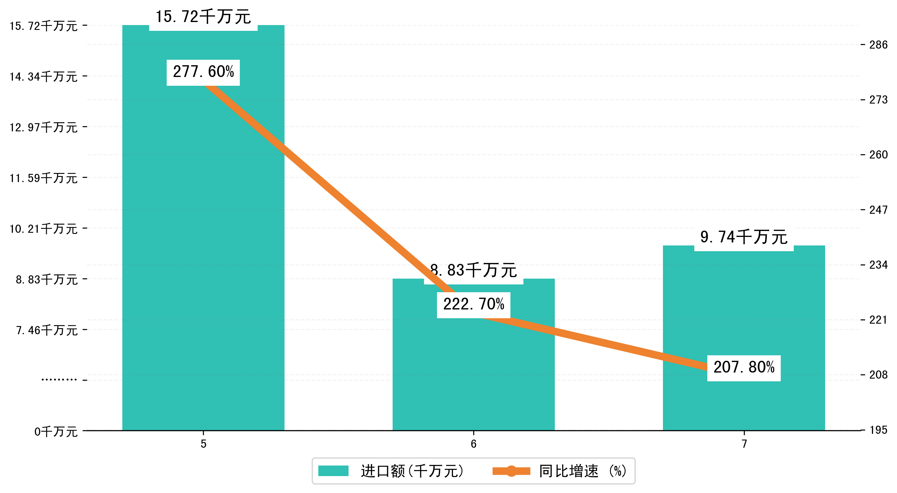 以人民币计,2024年7月拉萨市进口额为9735.8614万元,相比上月增加了902.0744万元;相比上年同期增加了5761.8918万元,同比增加了207.80%。