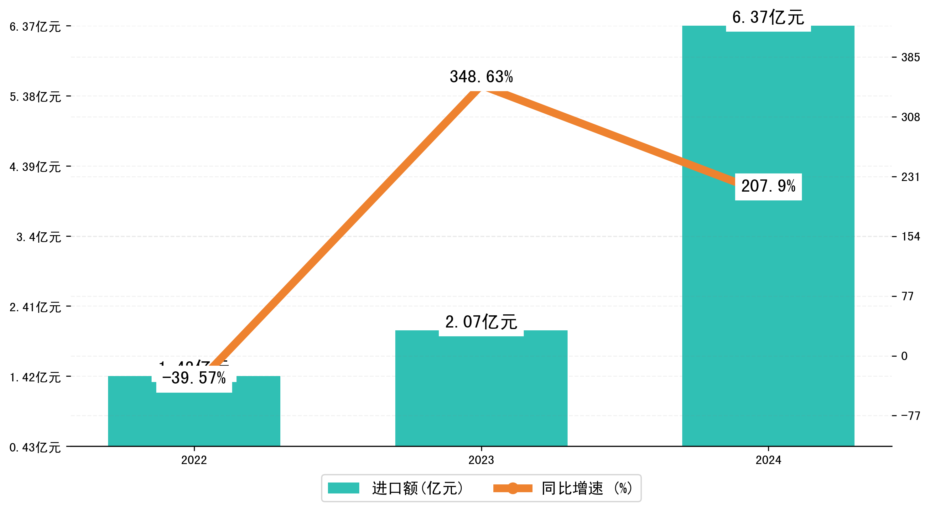 以人民币计,2024年1-7月拉萨市进口额为6,3658.3469万元,相比上年同期增加了4,2983.4611万元,同比增加了207.80%。