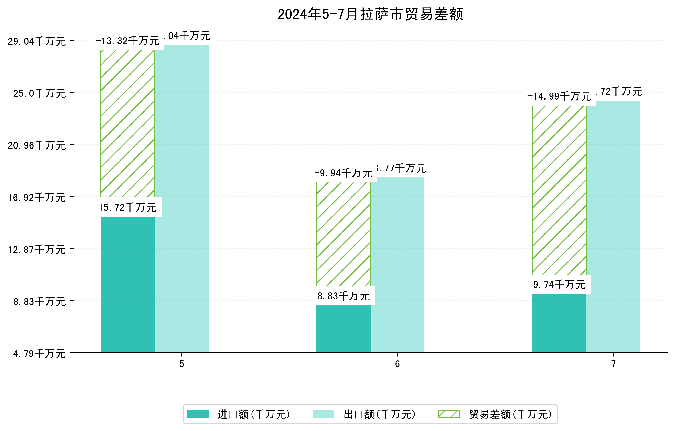 2024年7月拉萨市进出口总额及进出口差额统计分析