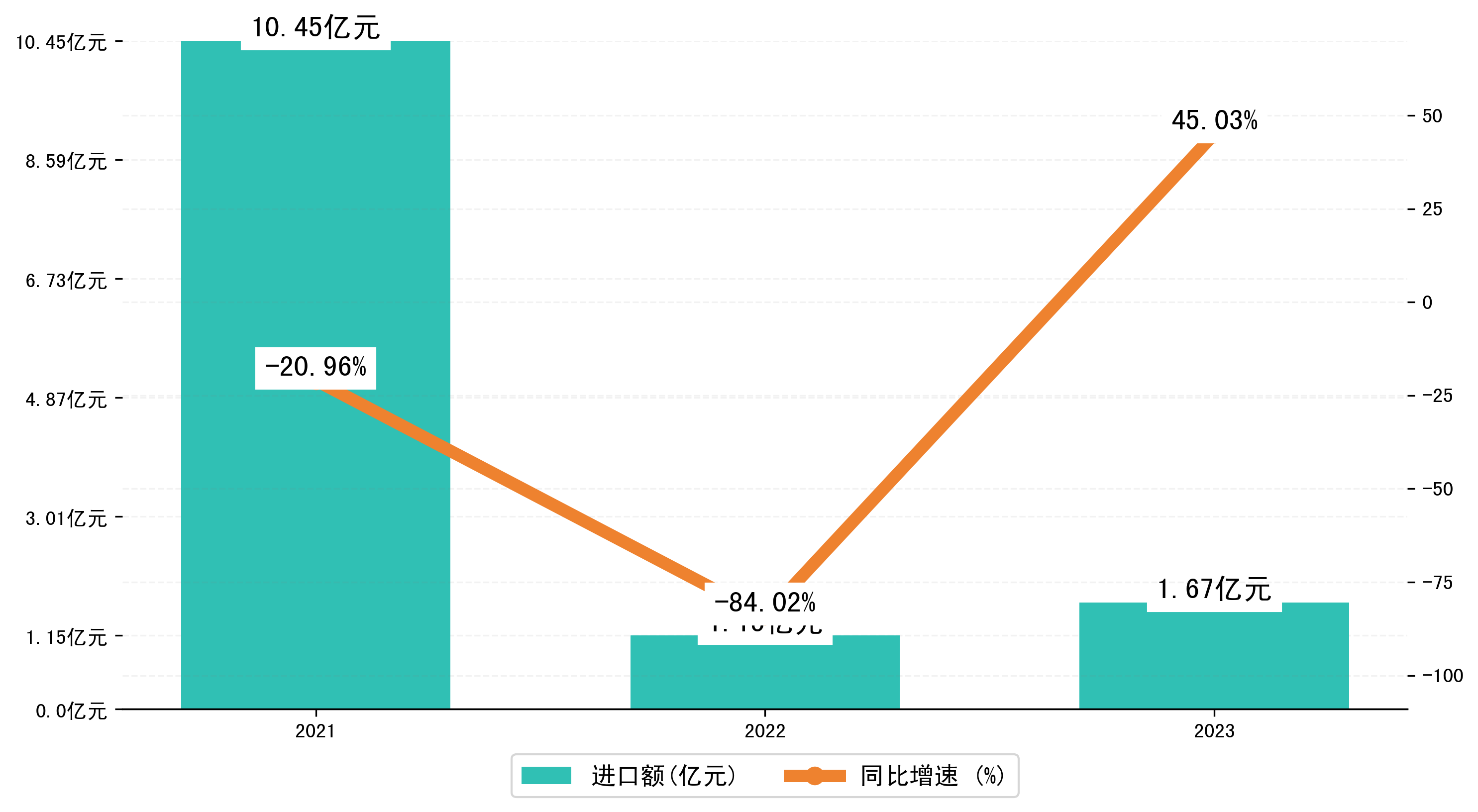 以美元计,2023年1-6月拉萨市进口额为2419.3384万美元,相比上年同期增加了617.4792万美元,同比增加34.30%。