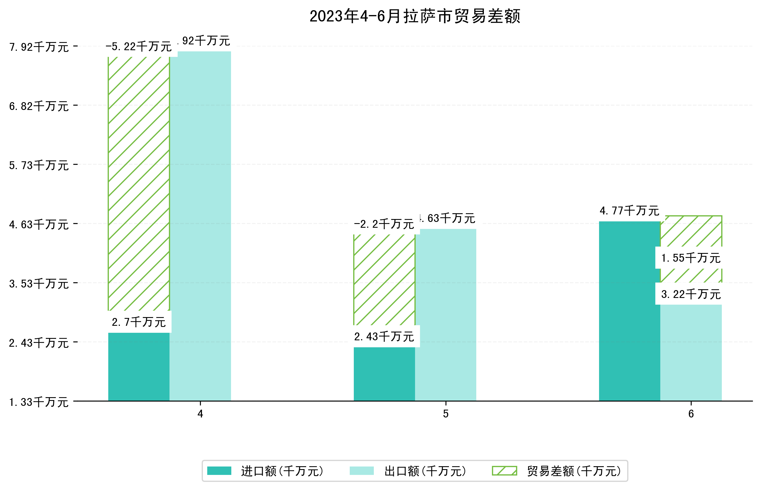 2023年6月拉萨市进出口总额及进出口差额统计分析