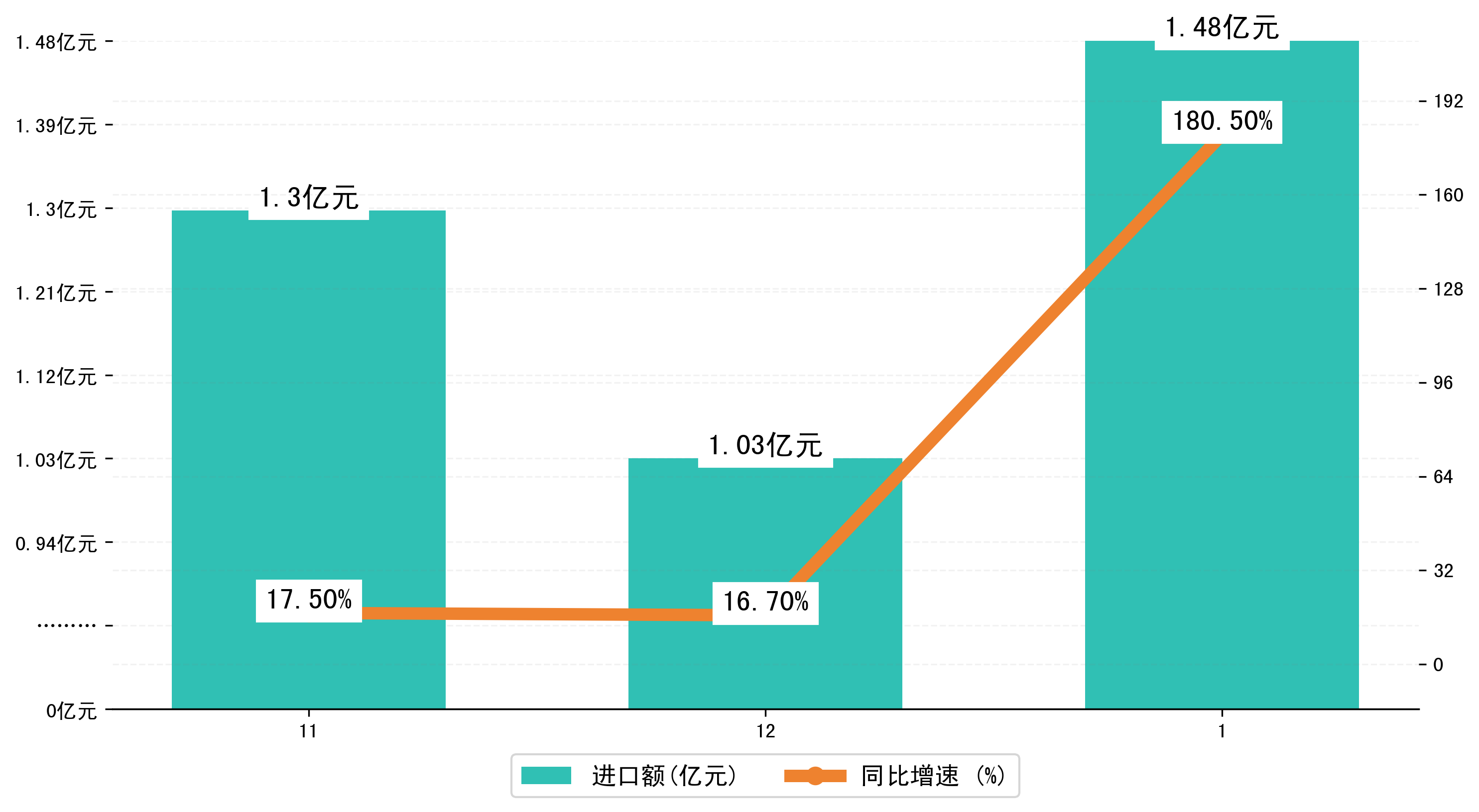 (图三:2025年11-1月拉萨市进口额)