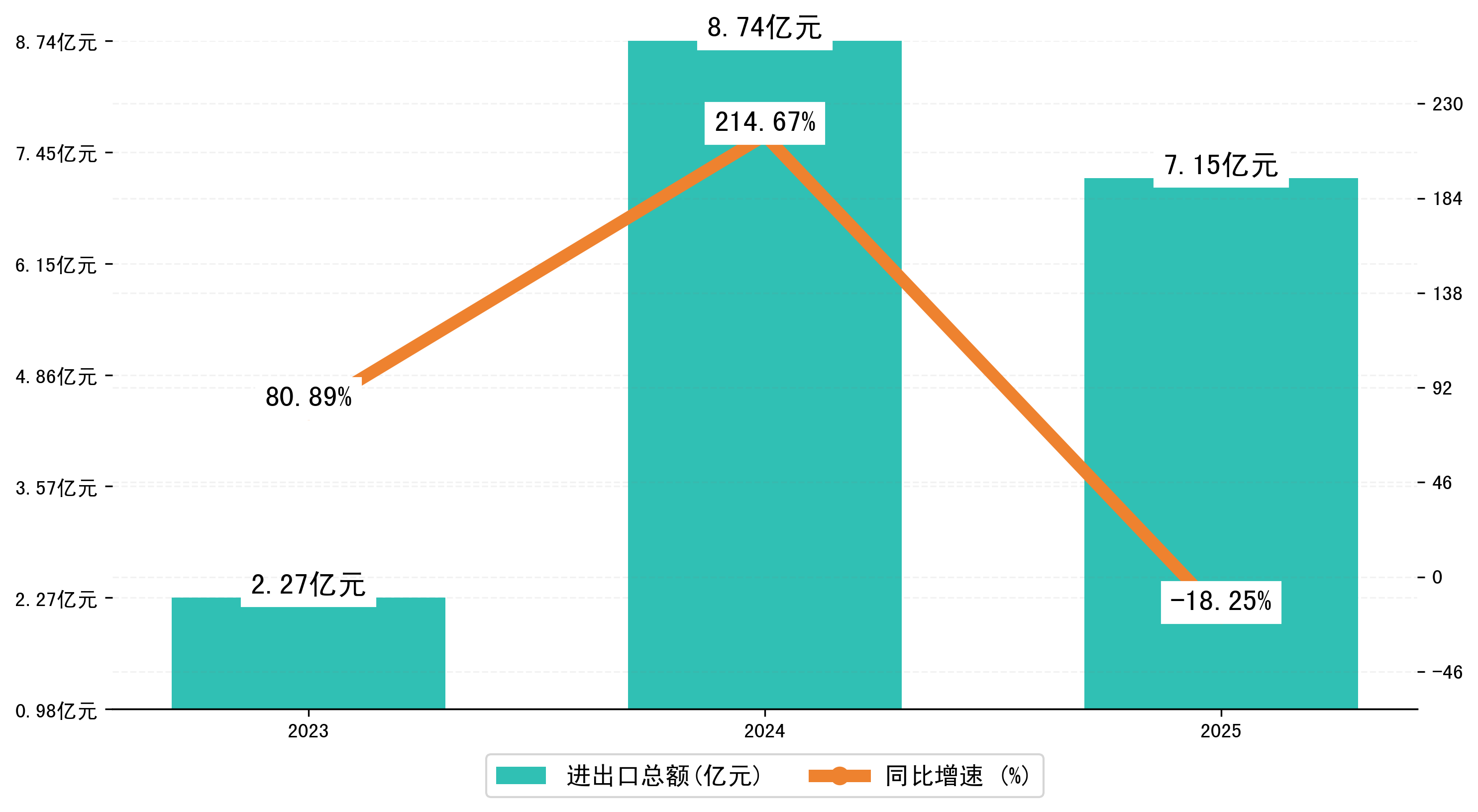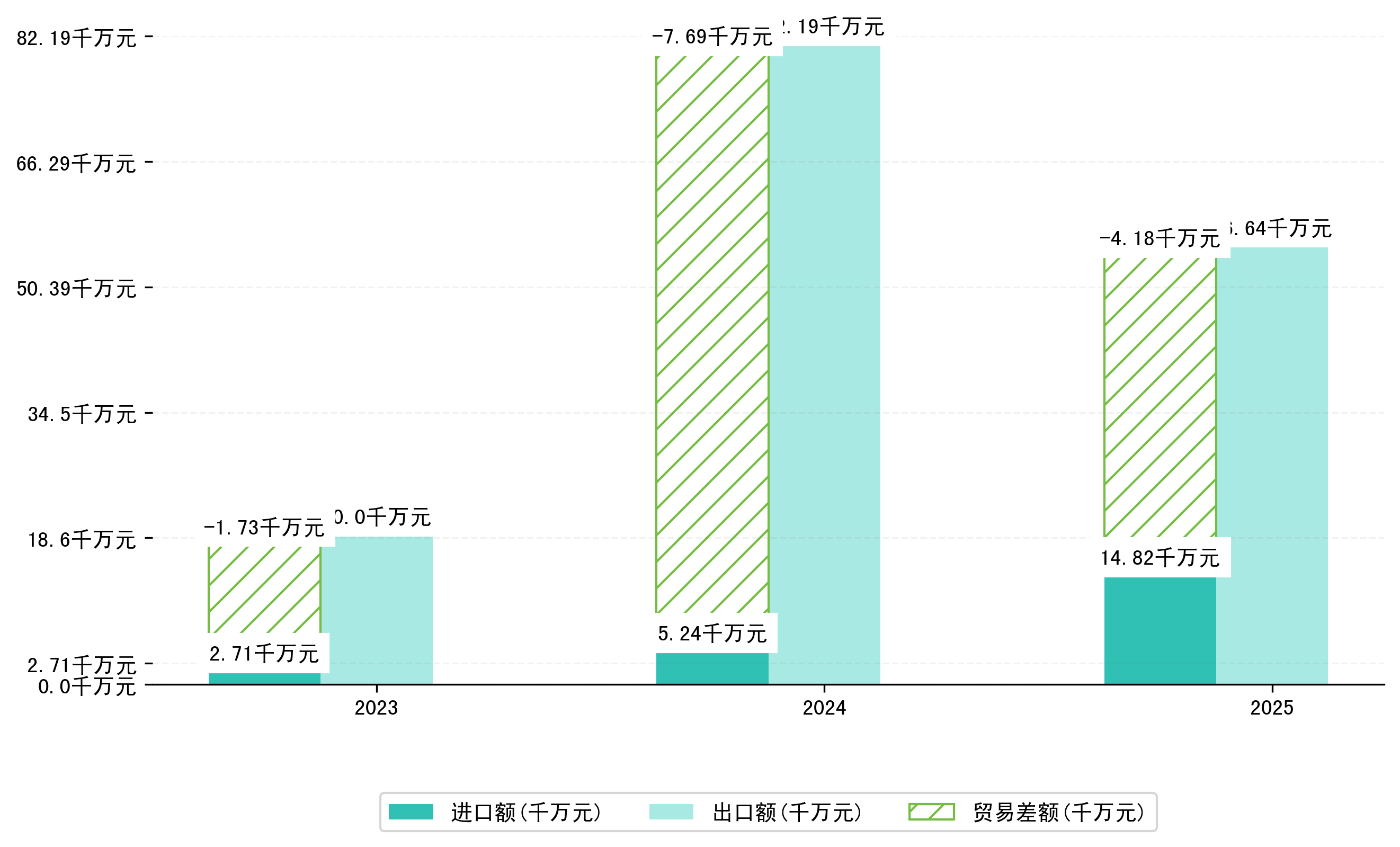以人民币计,2025年1月拉萨市贸易差额为4,1819,4915万元(贸易顺差),相比上月减少了5,5600,4255万元,即7731,2658万美元;相比上年同期减少了3,5130,2027万元,同比减少-45.65%。