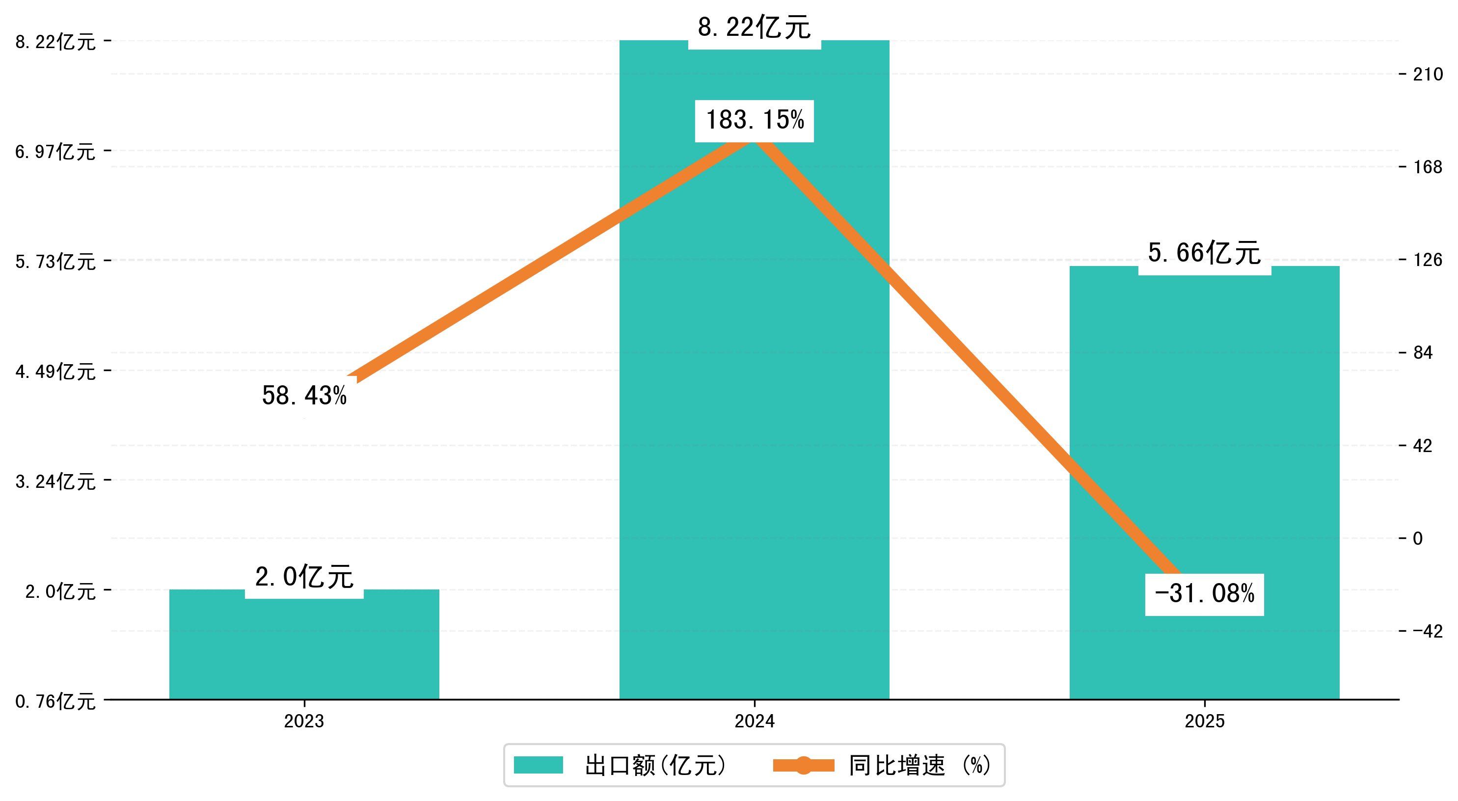 以人民币计,2025年1月拉萨市出口额为5,6642.5141万元,相比上月减少了5,1078.321万元;相比上年同期减少了2,5543.9293万元,同比减少了-31.10%。
