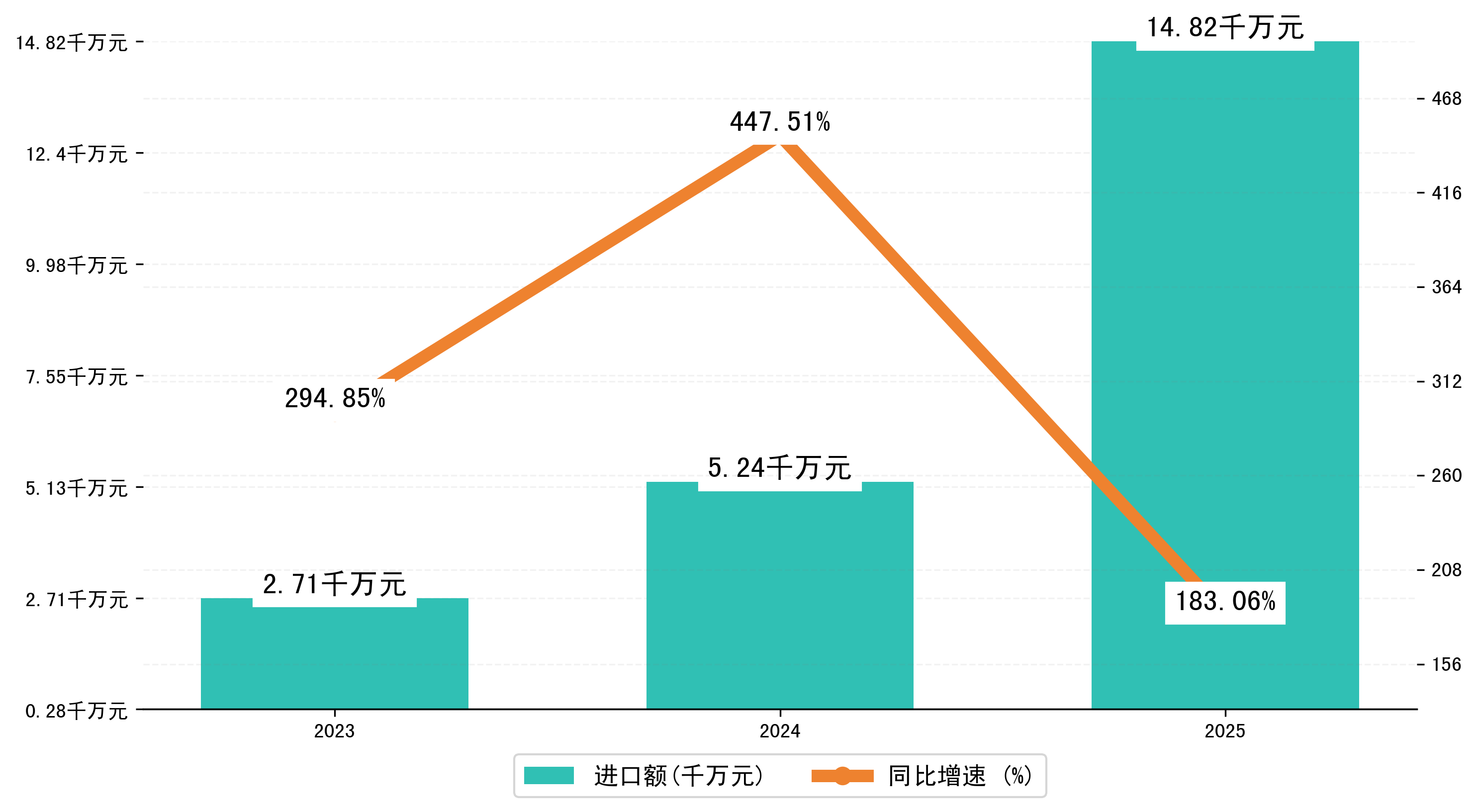 以人民币计,2025年1-1月拉萨市进口额为1,4823.0226万元,相比上年同期增加了9586.2734万元,同比增加了180.50%。