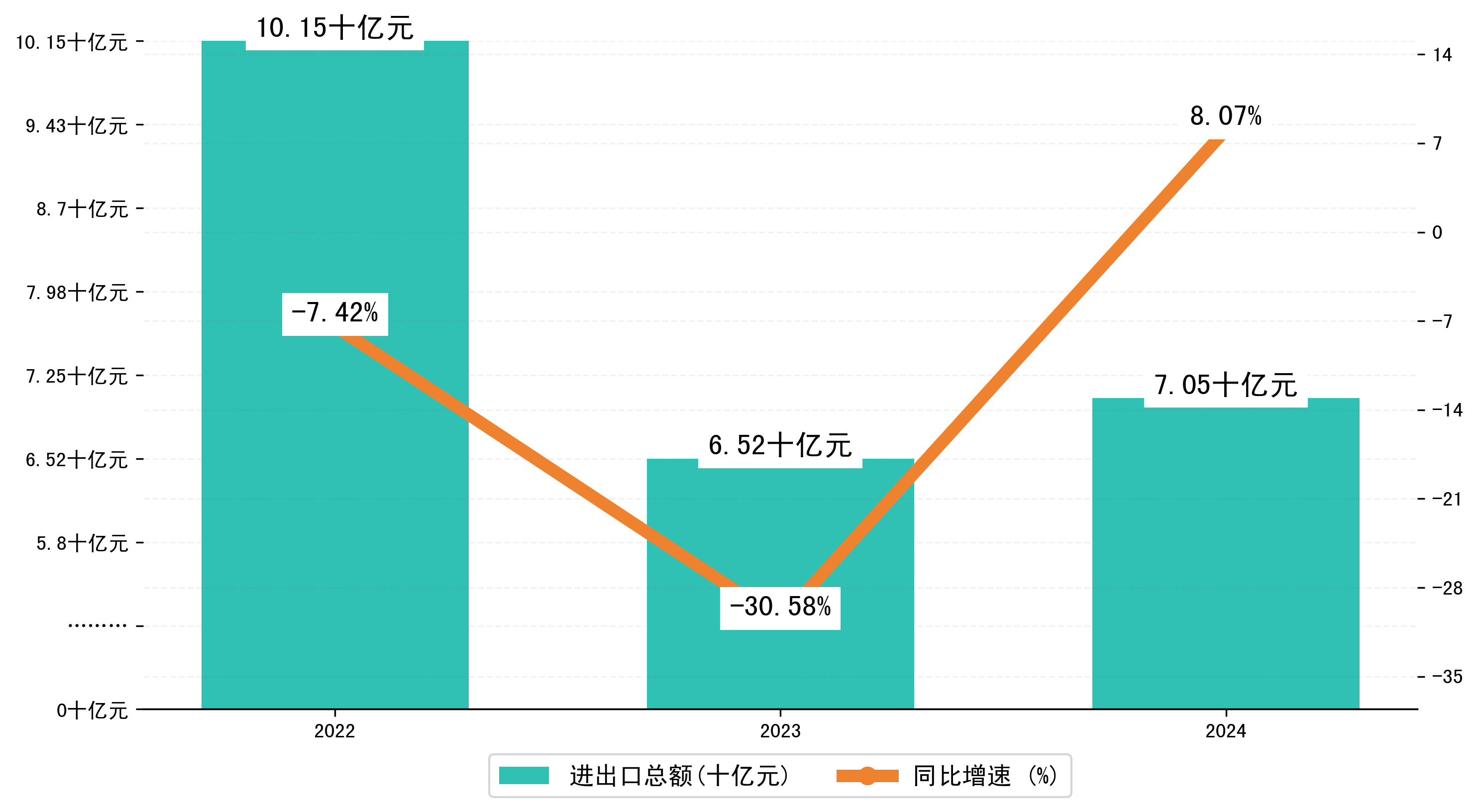 以人民币计,2024年1-11月乐山市进出口总额为70,4945.7628万元,相比上年同期增加了5,2619.56万元,同比增加了7.70%。