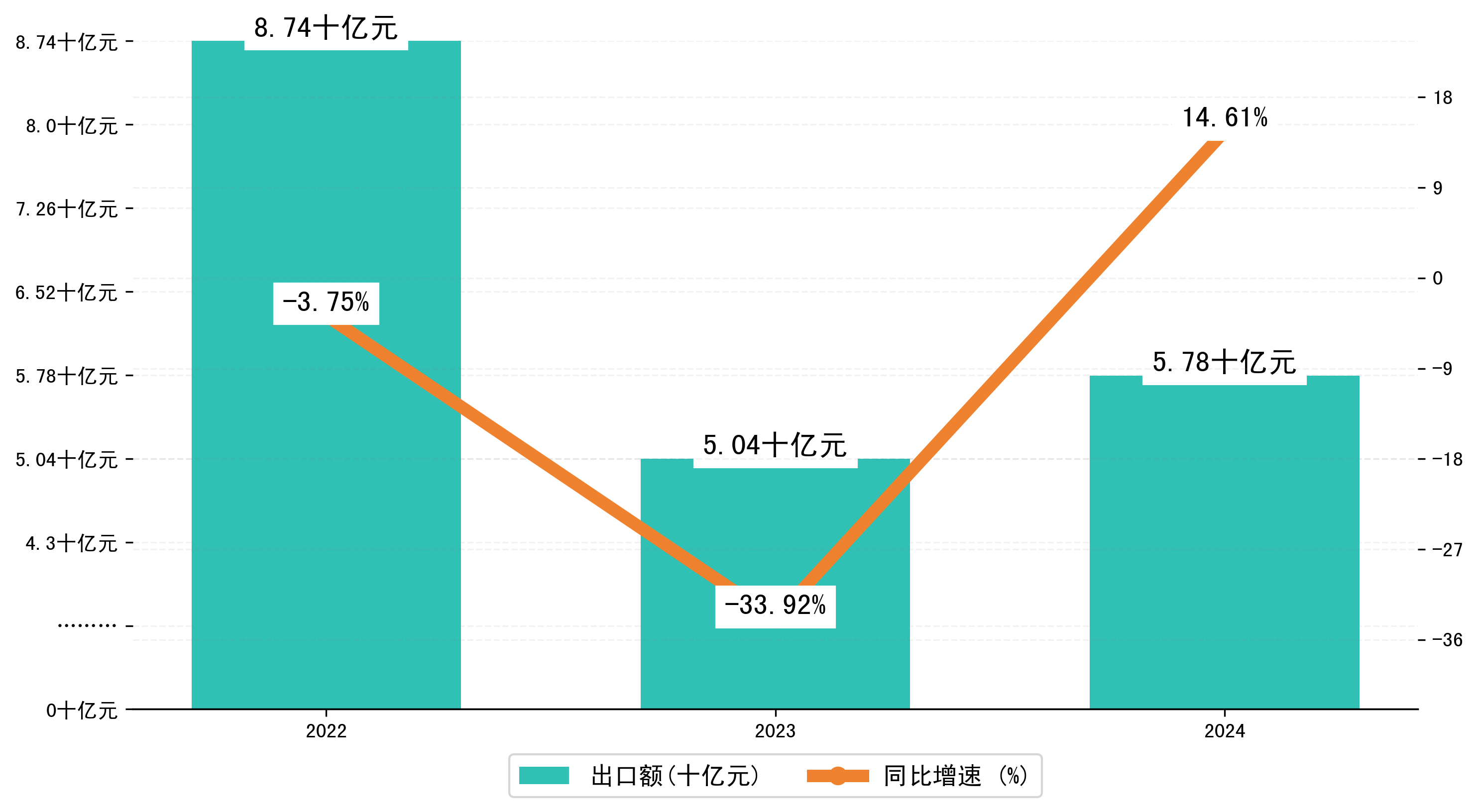 以美元计,2024年1-11月乐山市出口额为8,1253.7516万美元,相比上年同期增加了9382.8769万美元,同比增加13.10%。