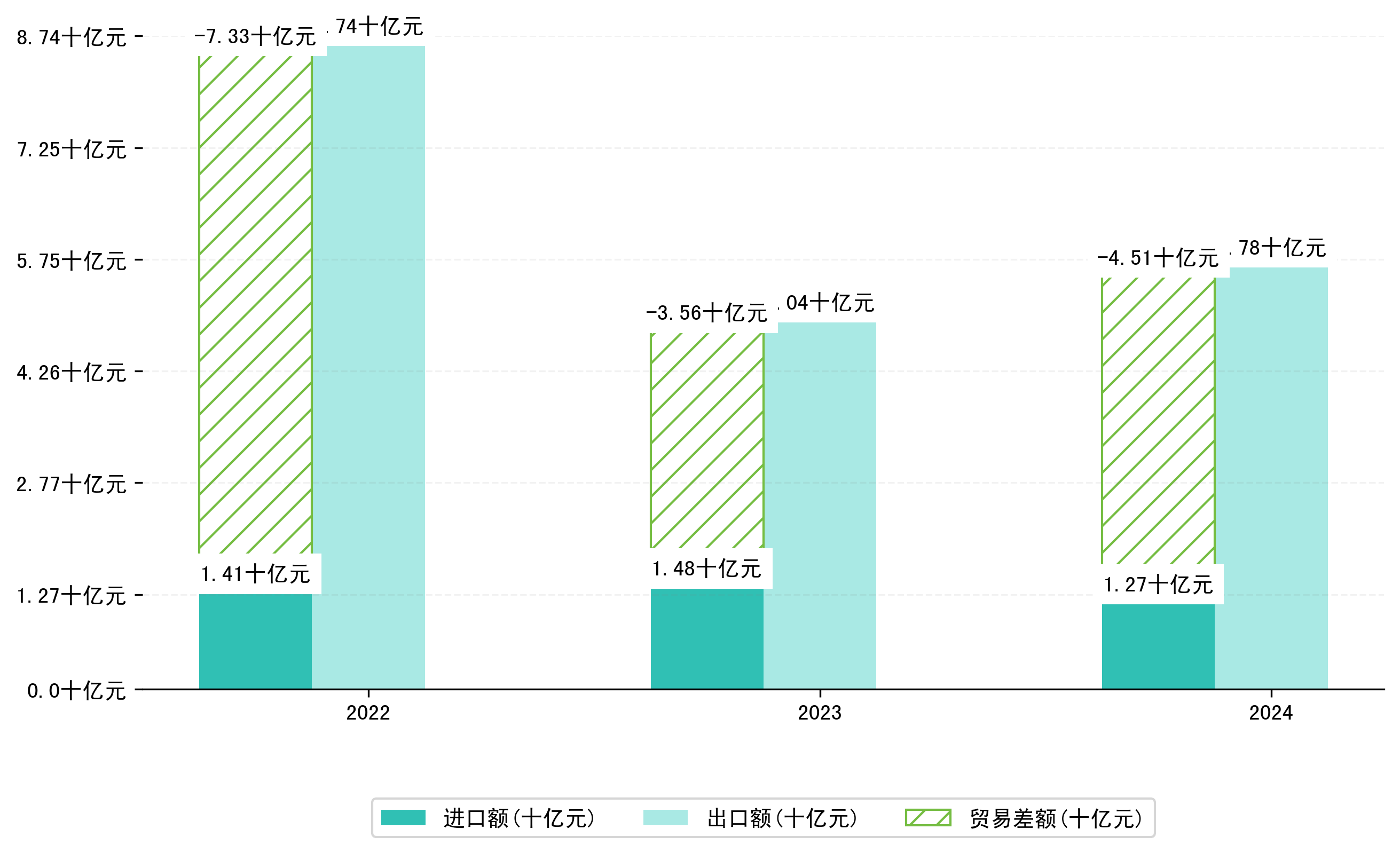 以美元计,2024年1-11月乐山市贸易差额为6,3366,5595万美元(贸易顺差),相比上年同期增加了1,2653,2525万美元,同比增加24.95%。