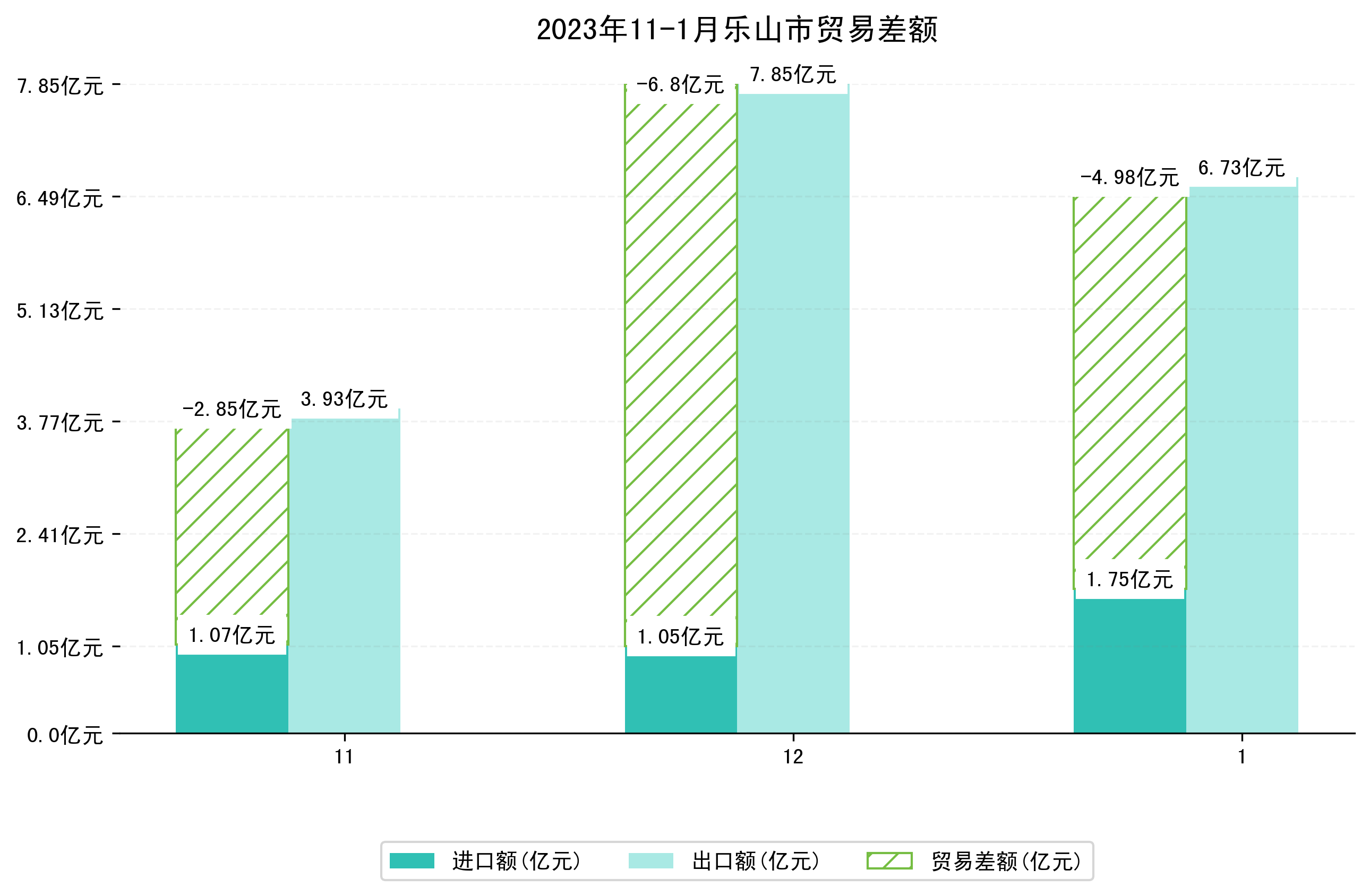 2023年1月乐山市进出口总额及进出口差额统计分析